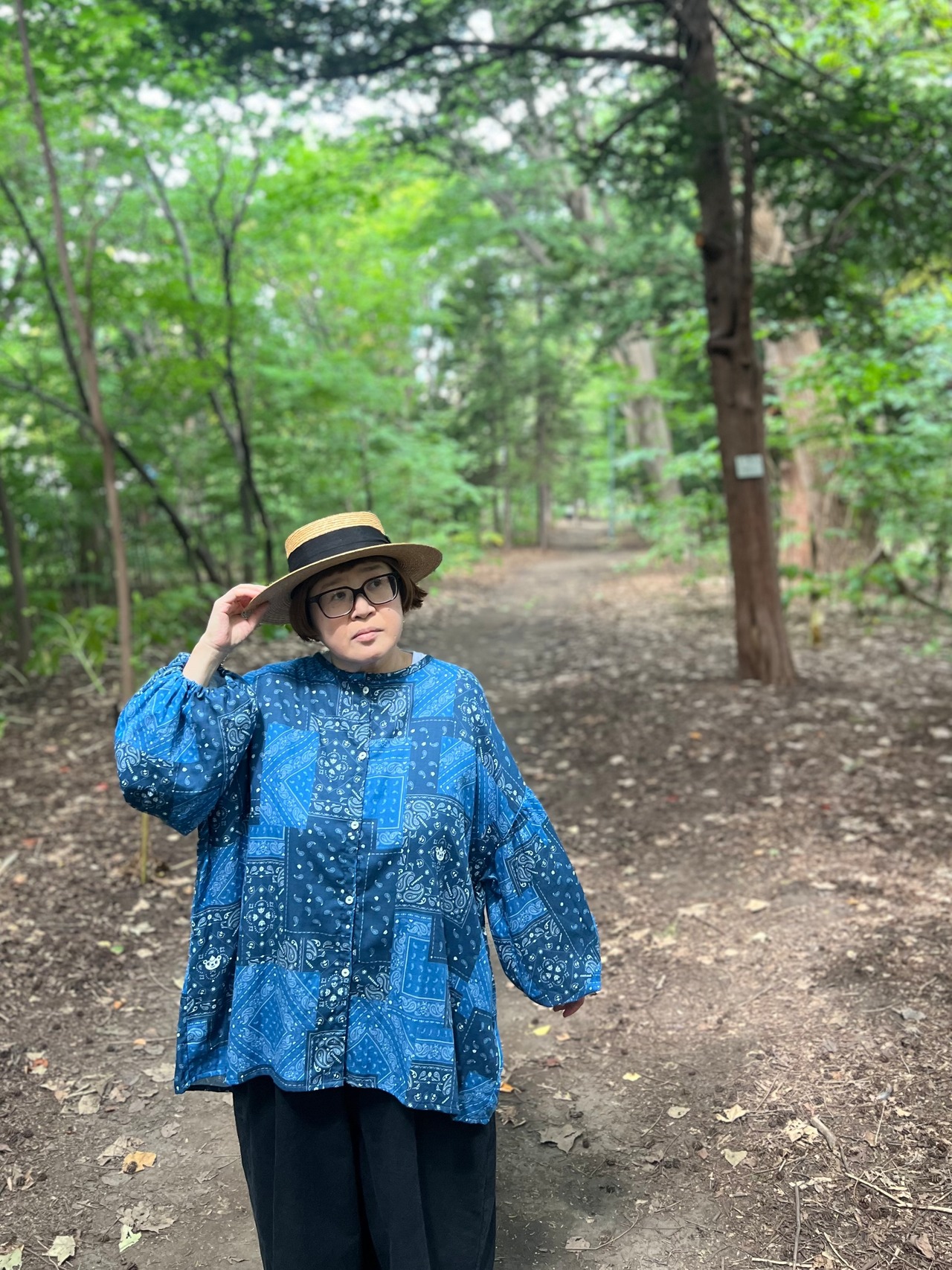 『バンダナ』パフスリーブギャザーブラウス・ブルー