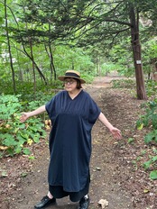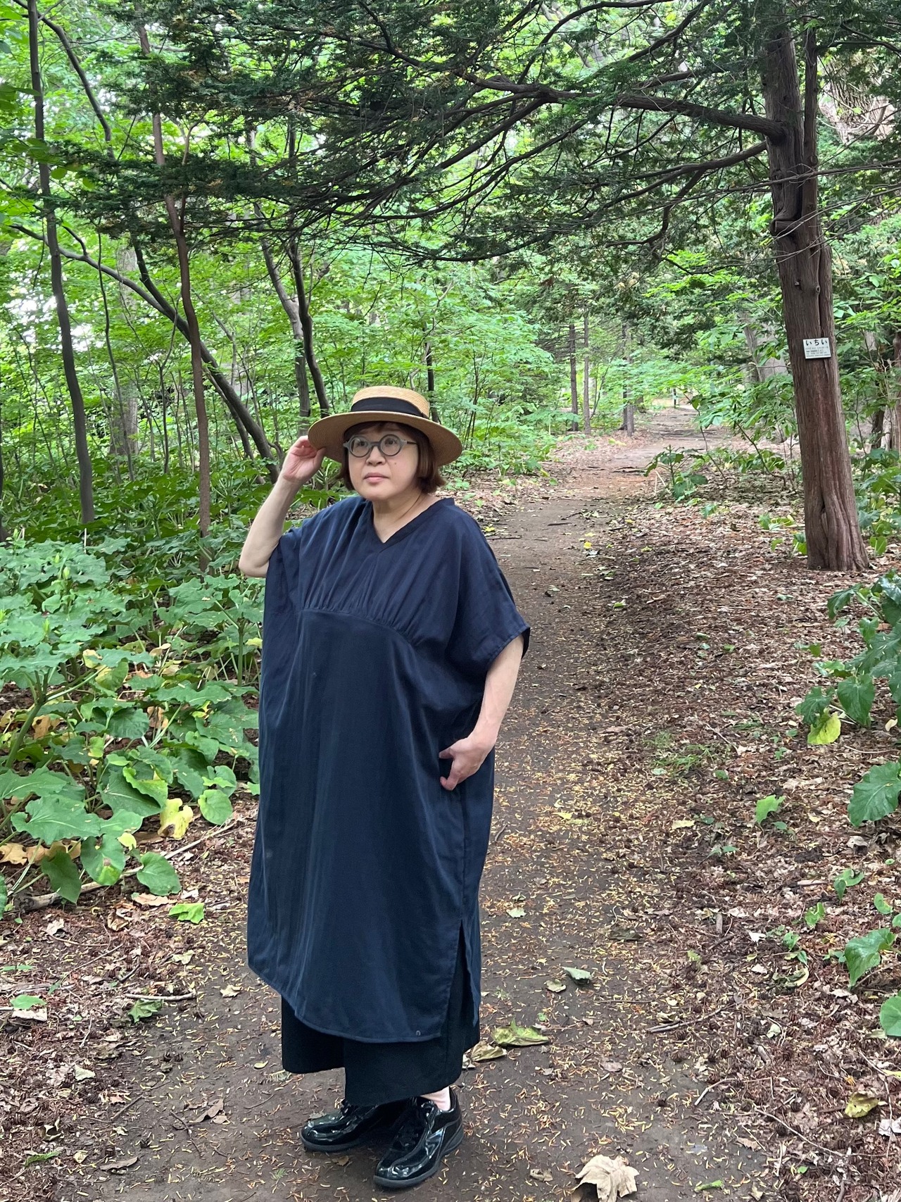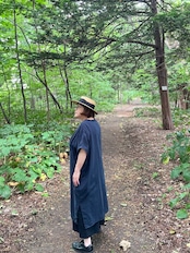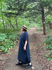 ガーゼ『Vネックギャザー半袖』ワンピース・ネイビー