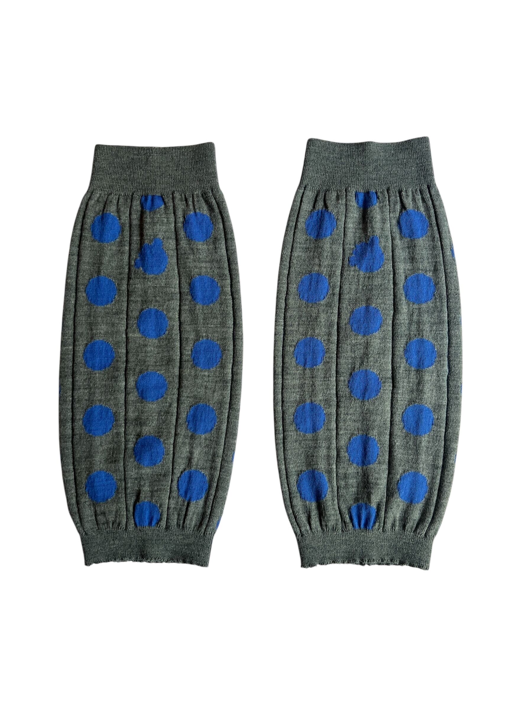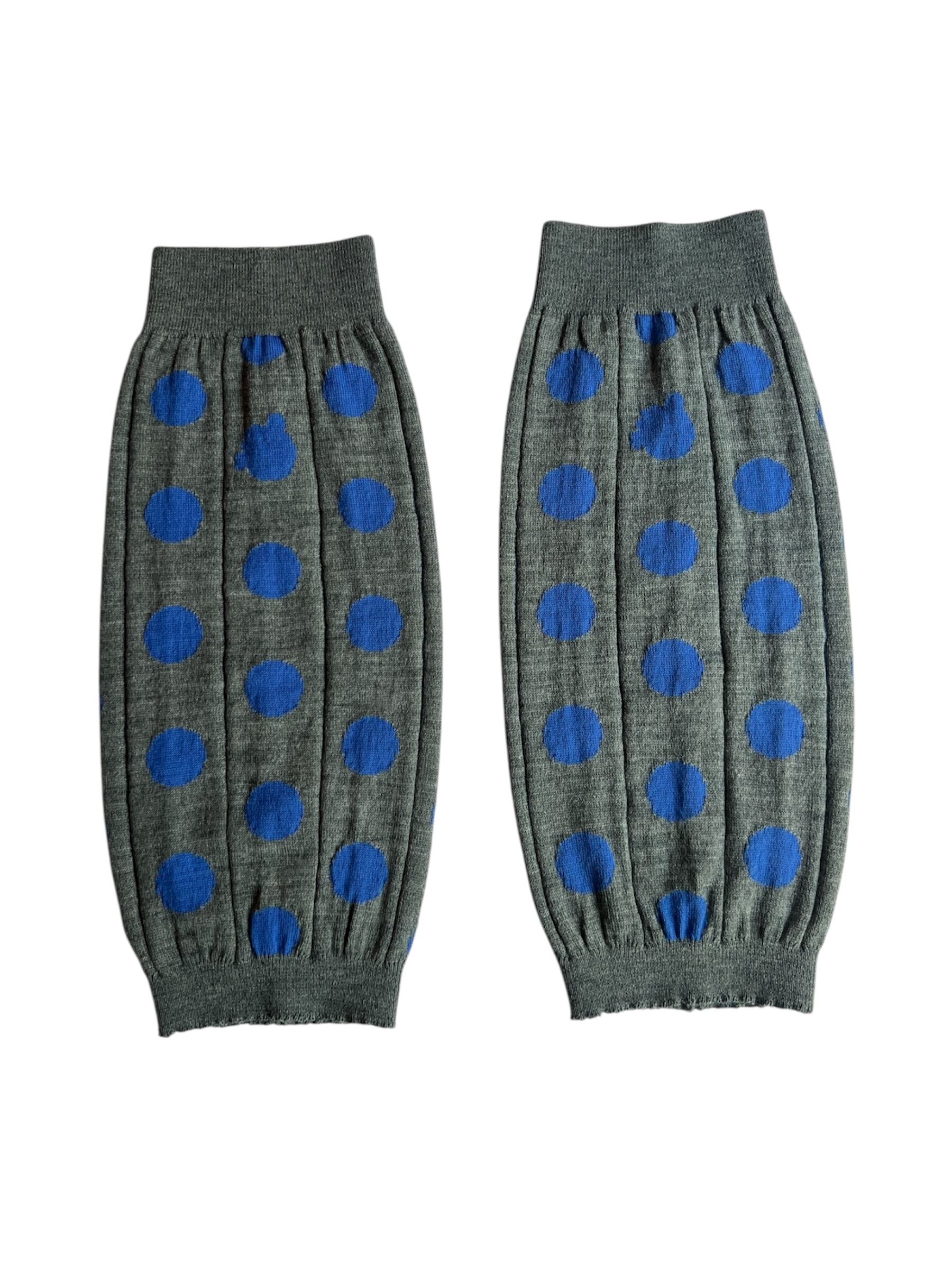 ニット『水玉レッグウォーマー』グレー×ブルー