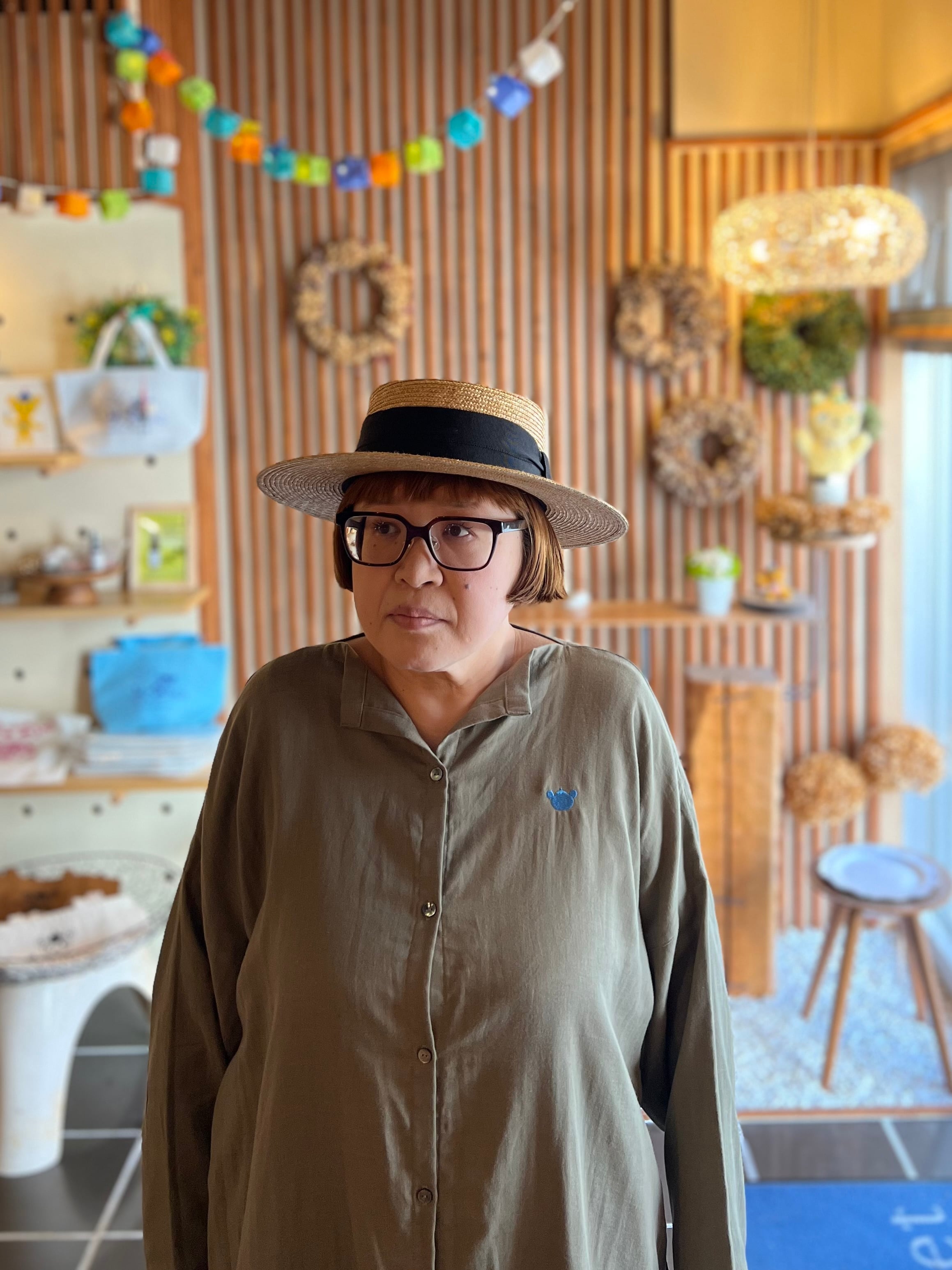 『ガーゼ』スキッパーシャツワンピース・カーキ