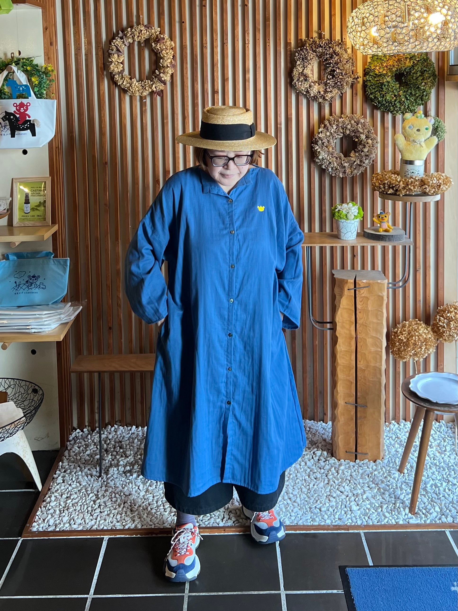 『ガーゼ』スキッパーシャツワンピース・北欧ブルー