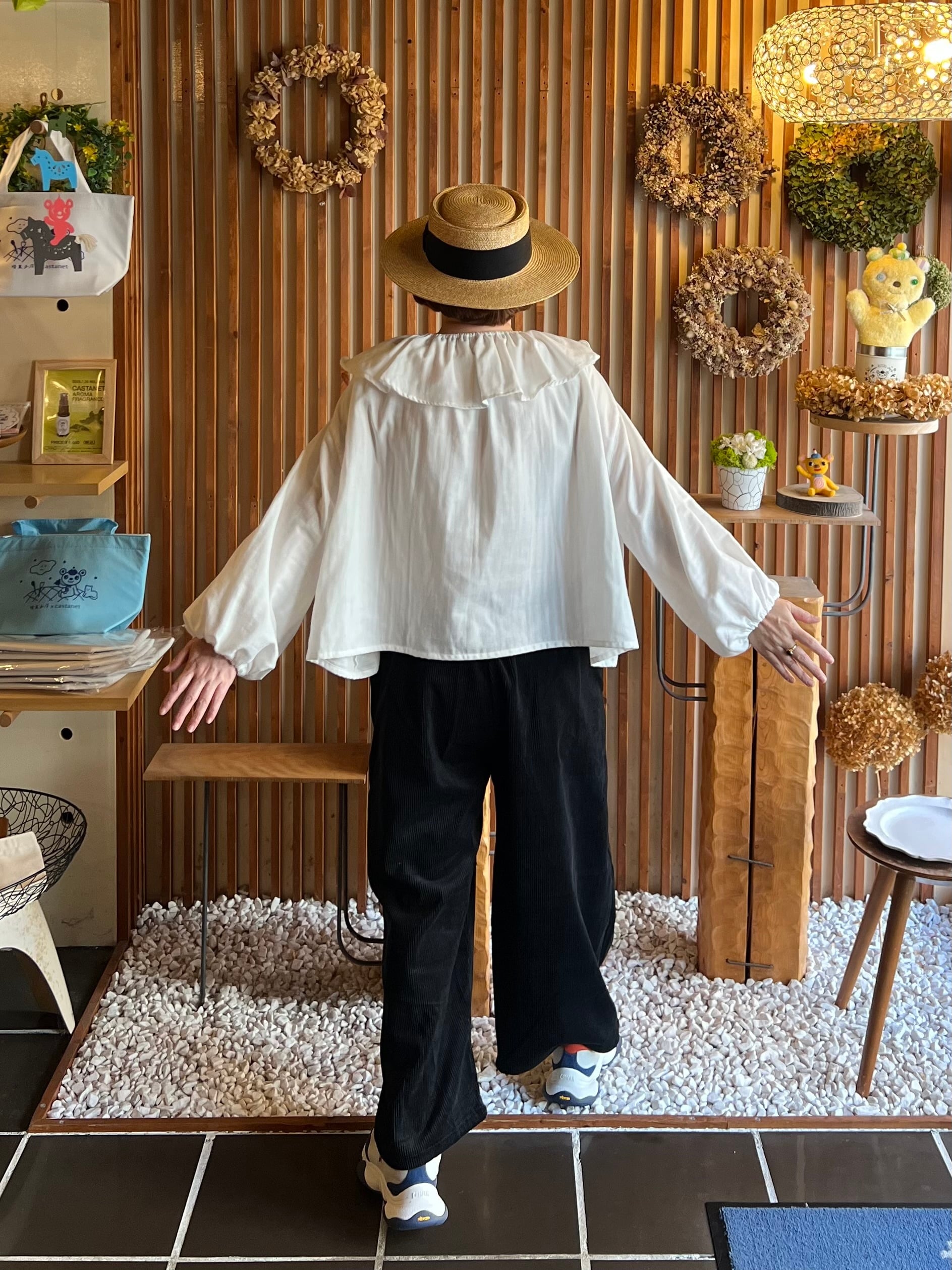 ウエストはゴムと紐なのでリラックスして履いていただけます。
