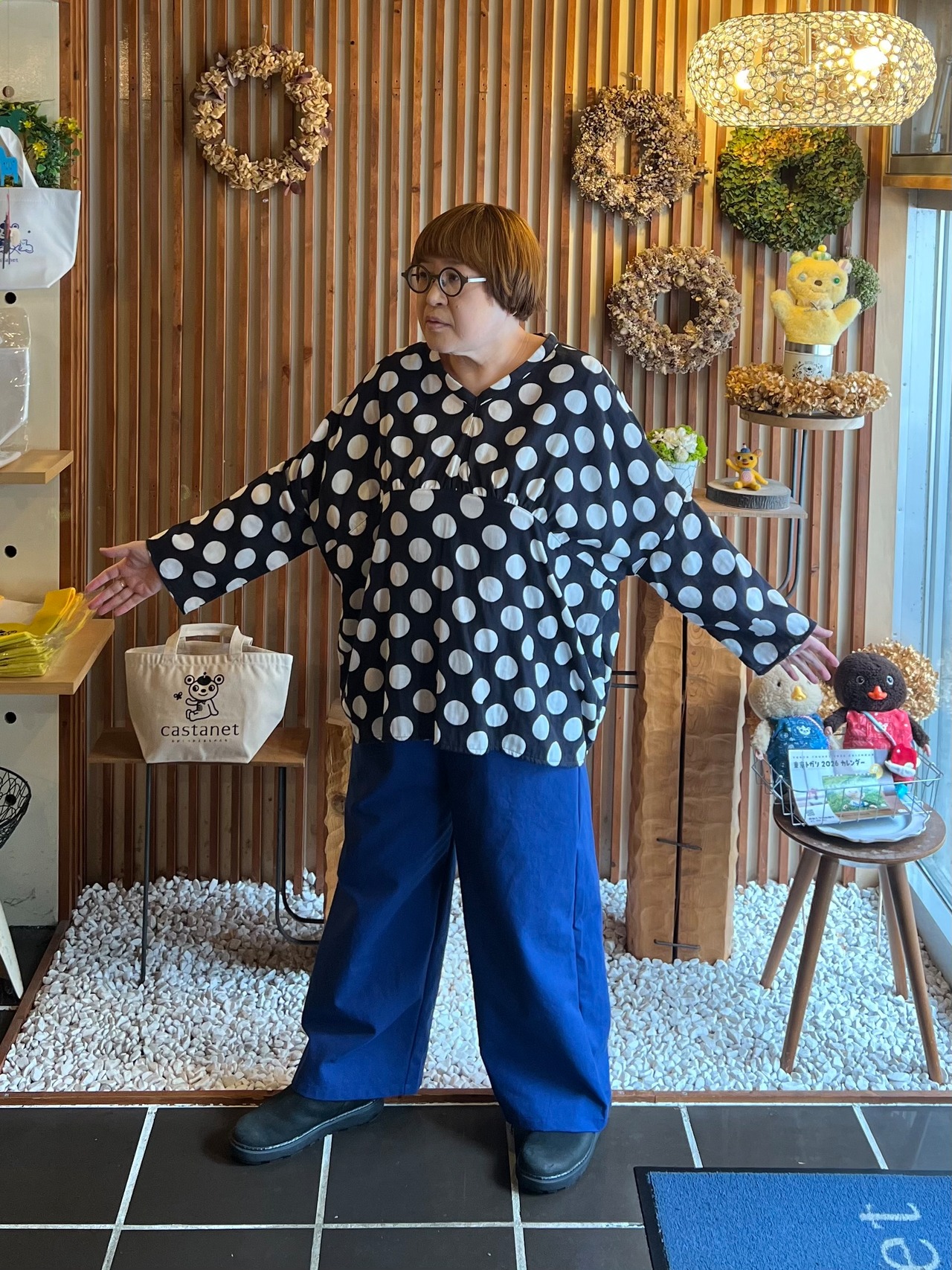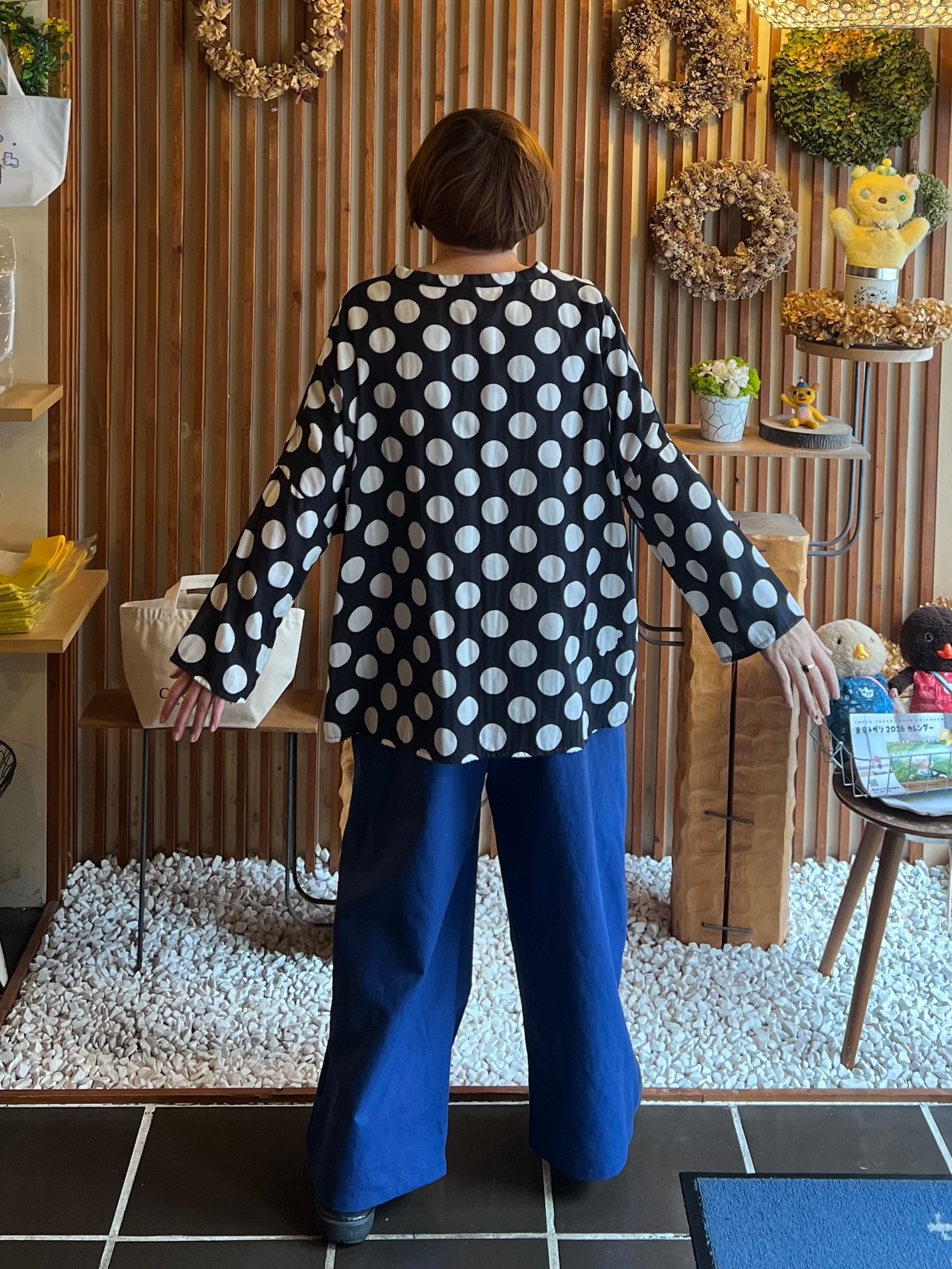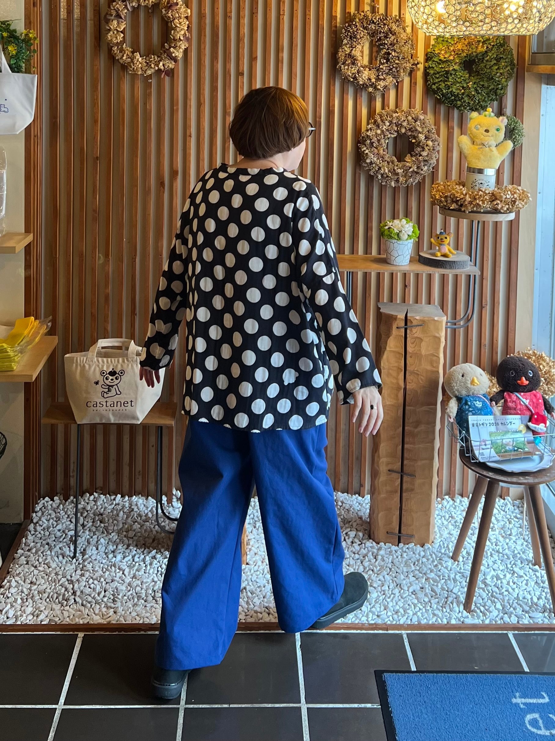 ウエストはゴムと紐なのでリラックスして履いていただけます。