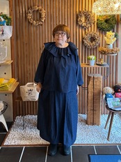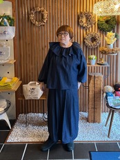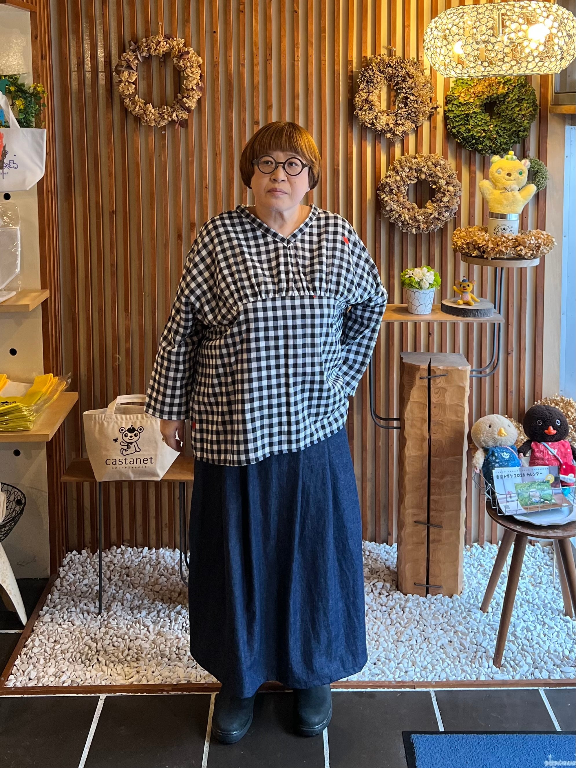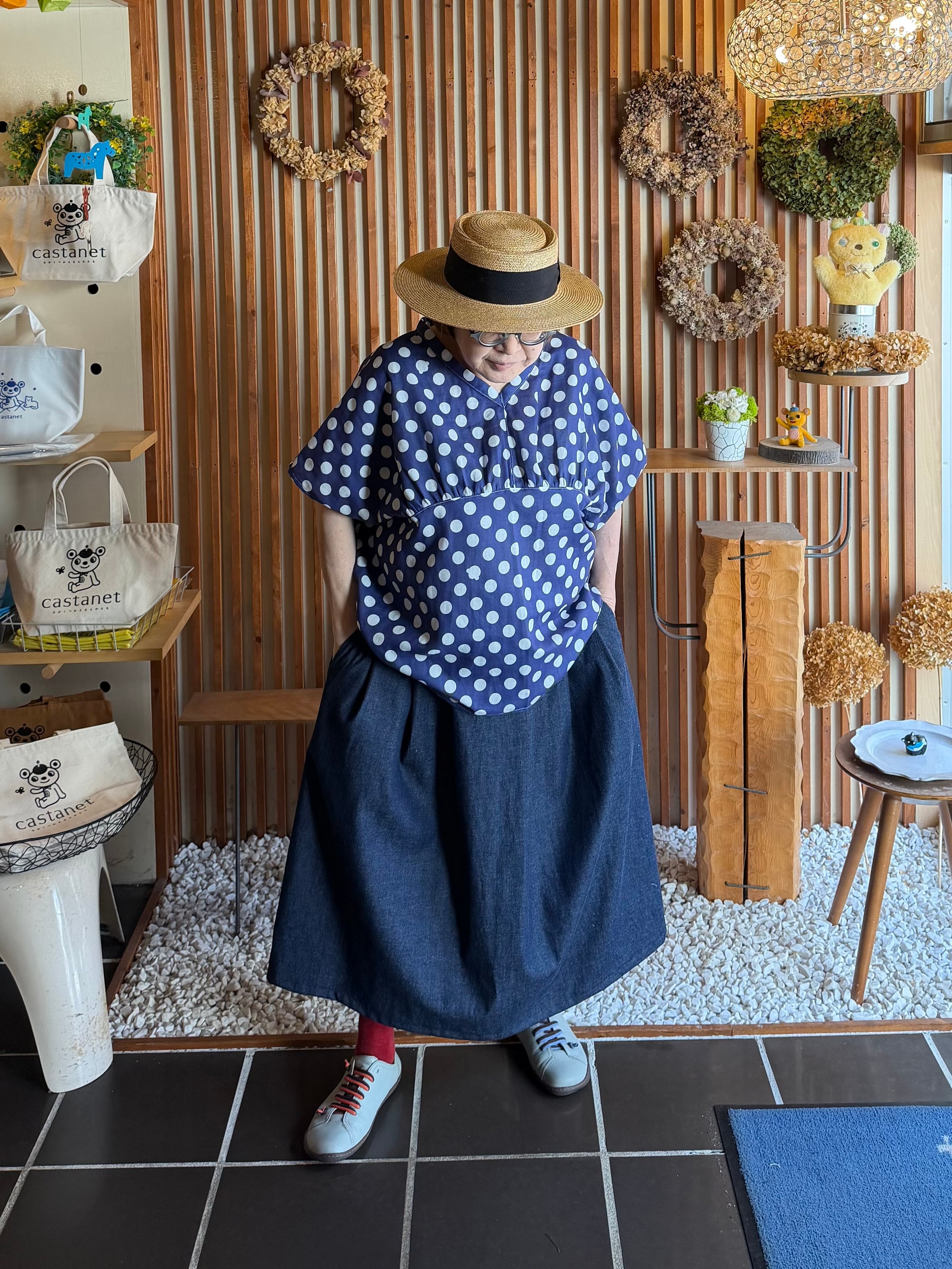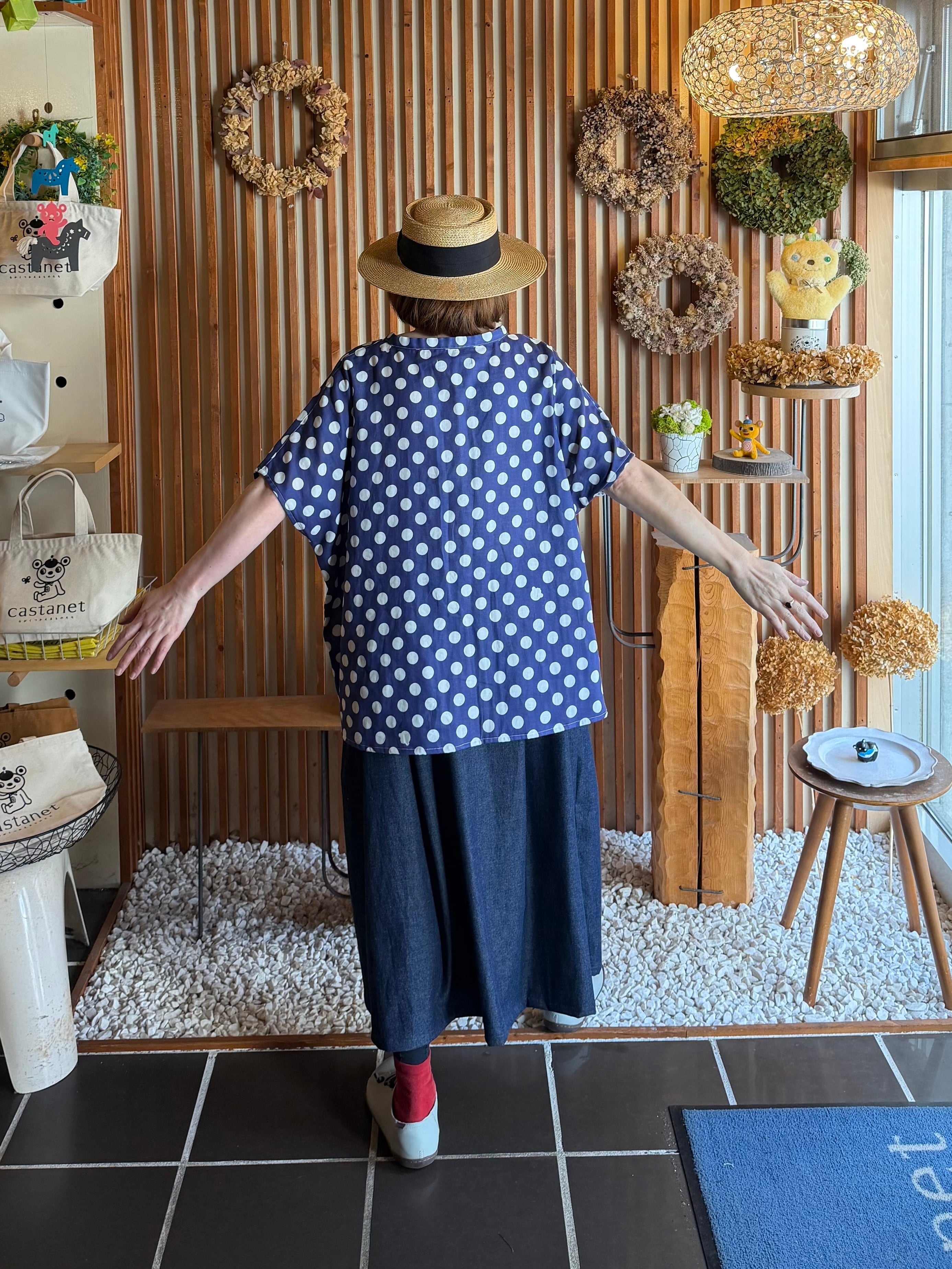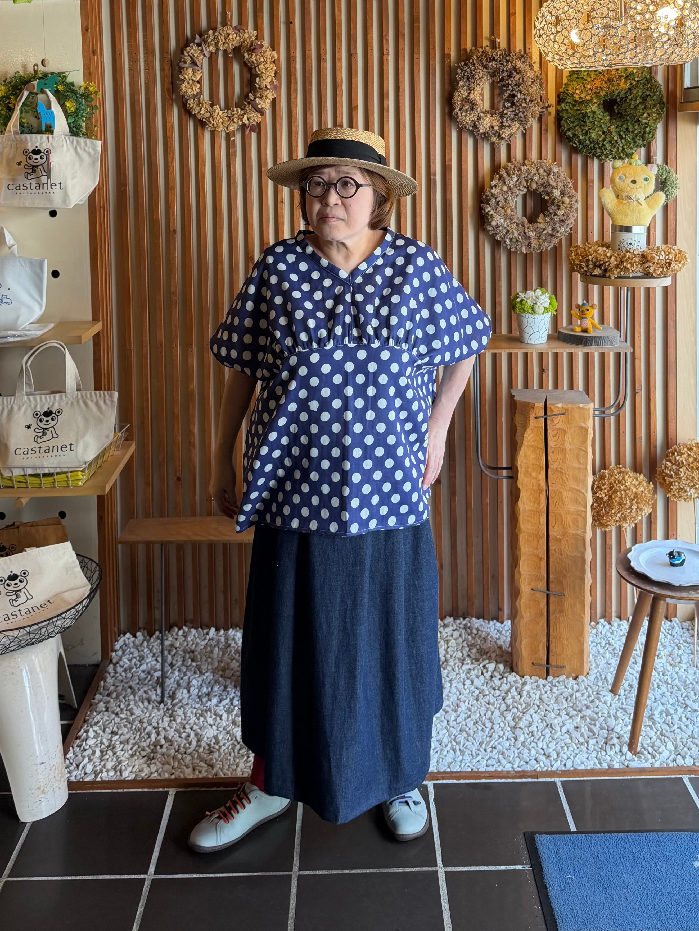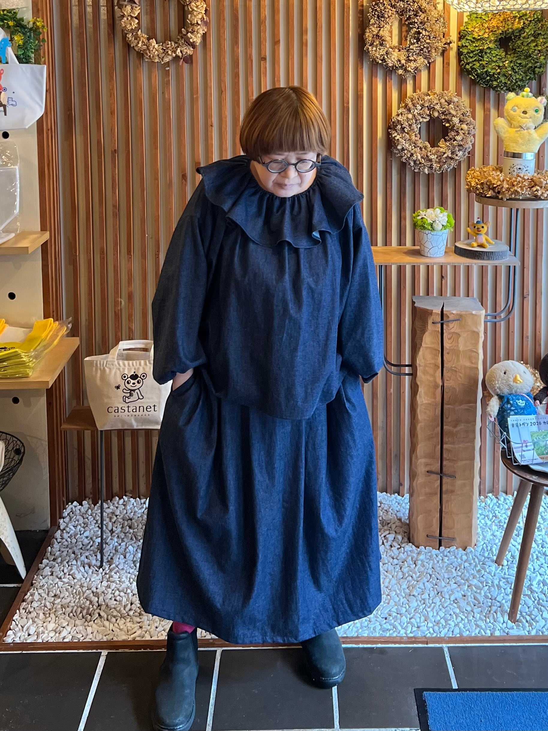 ウエスト下にタックを取ることでボリューム感を出し、ふわりとしてゆるやかに広がる上品なシルエットになっています。