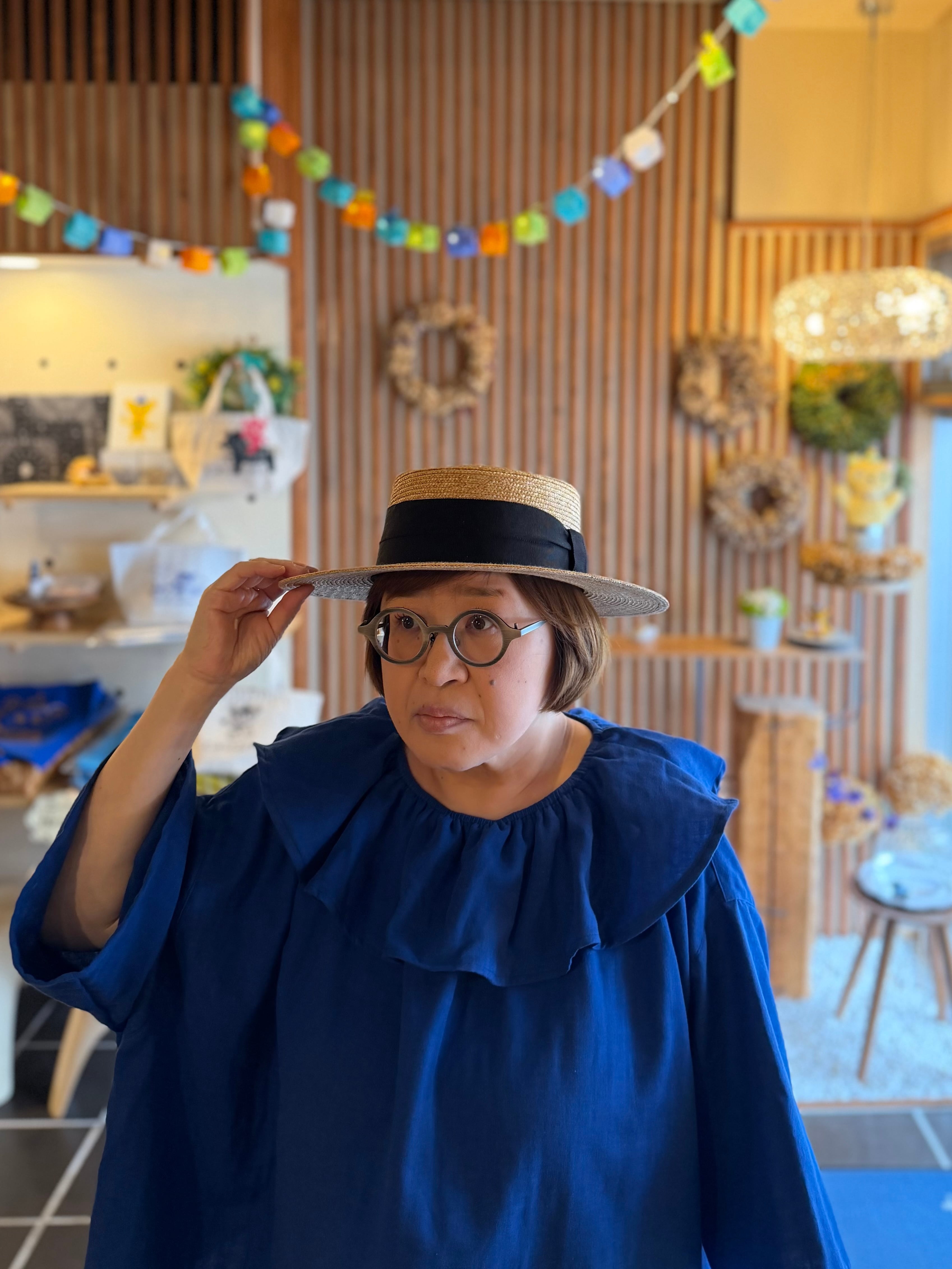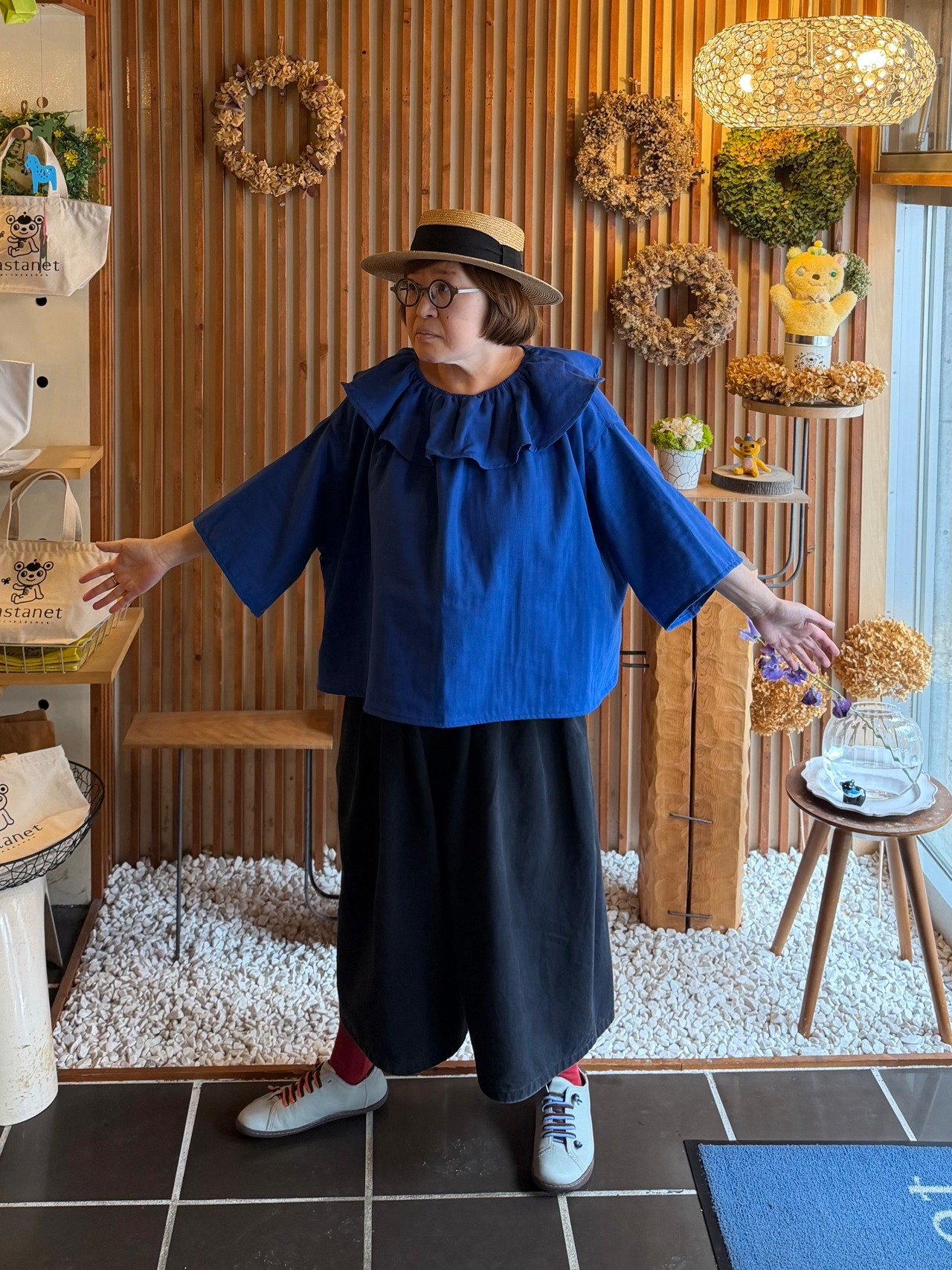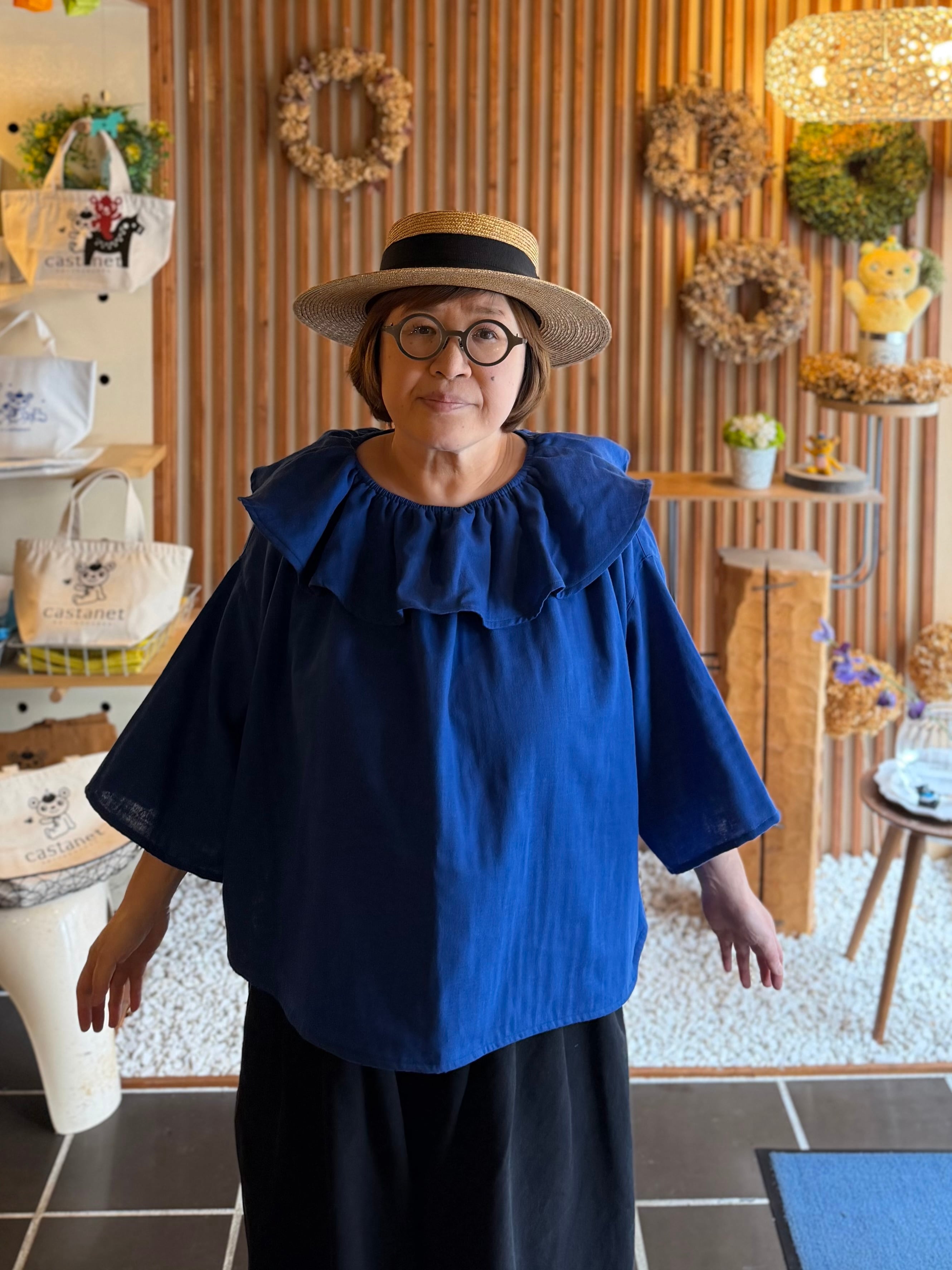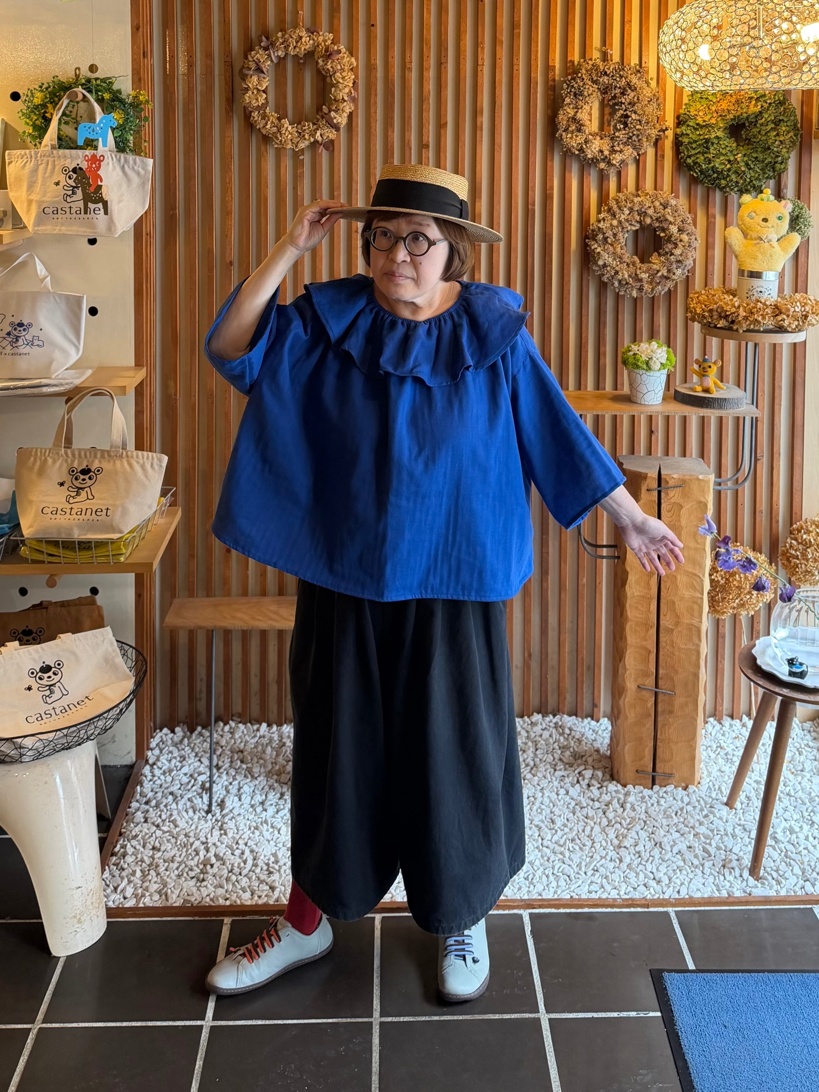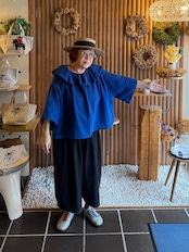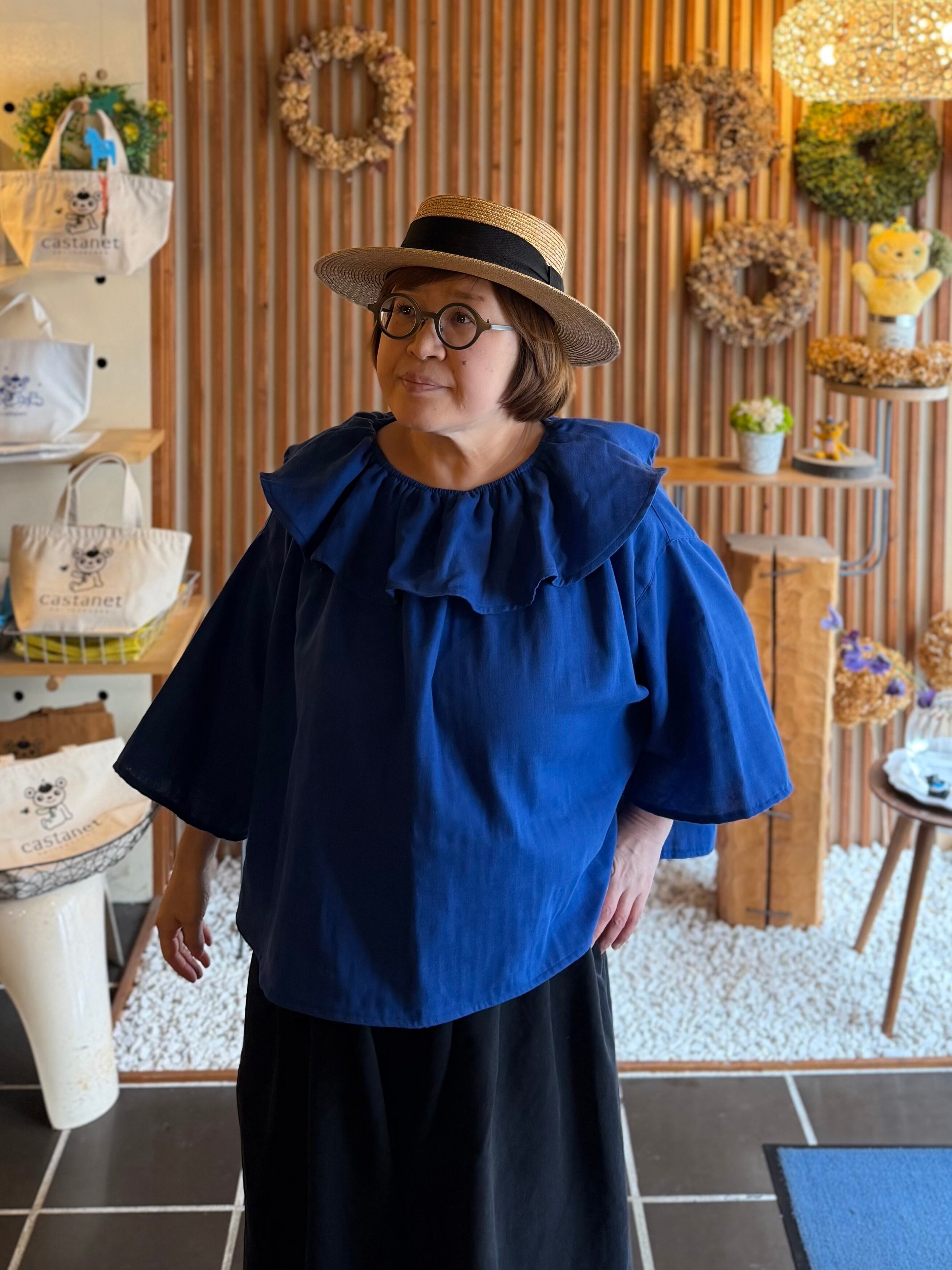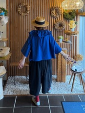 ガーゼ『フリル・ビックカラーブラウス半袖』ロイヤルブルー