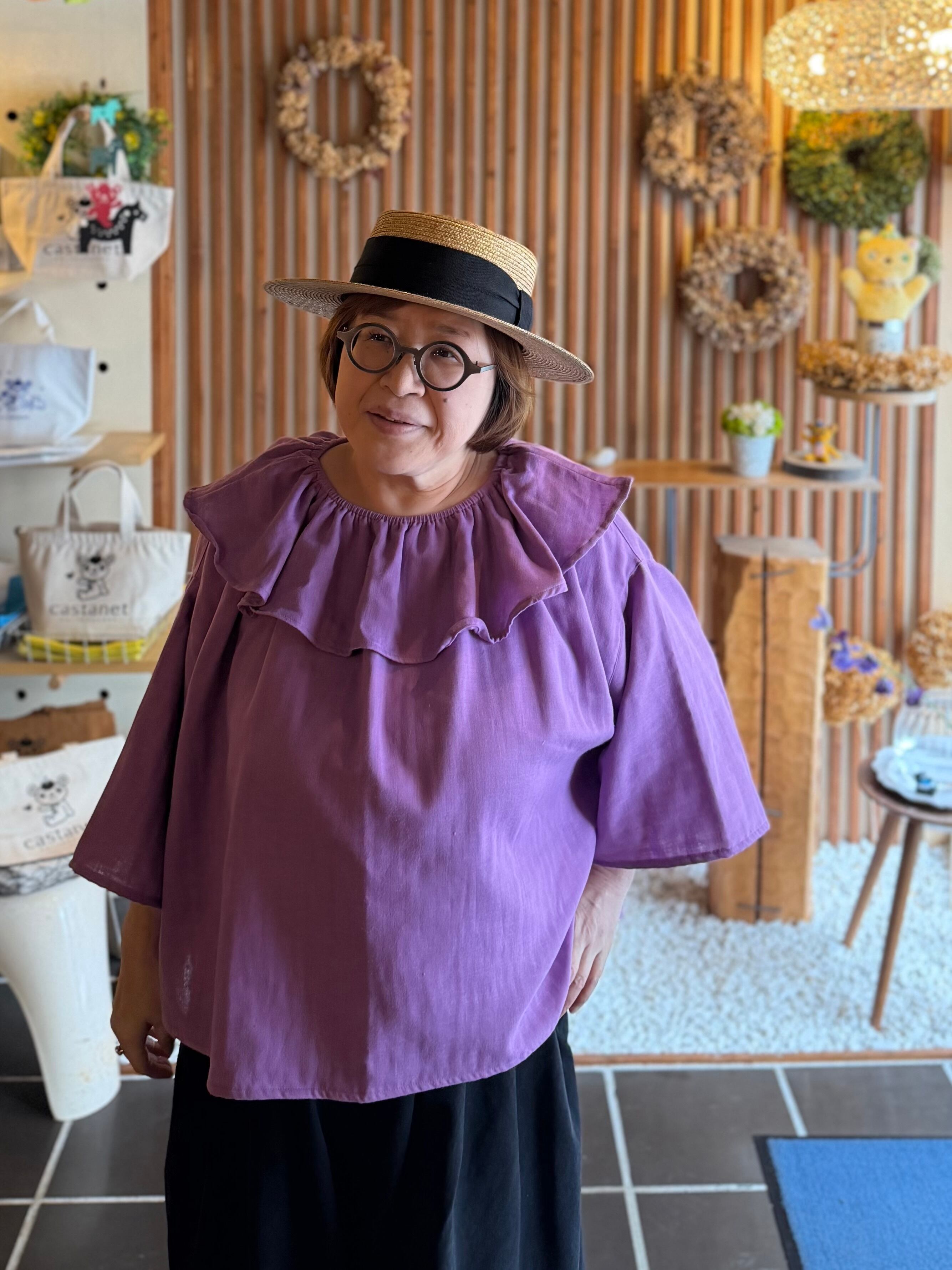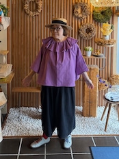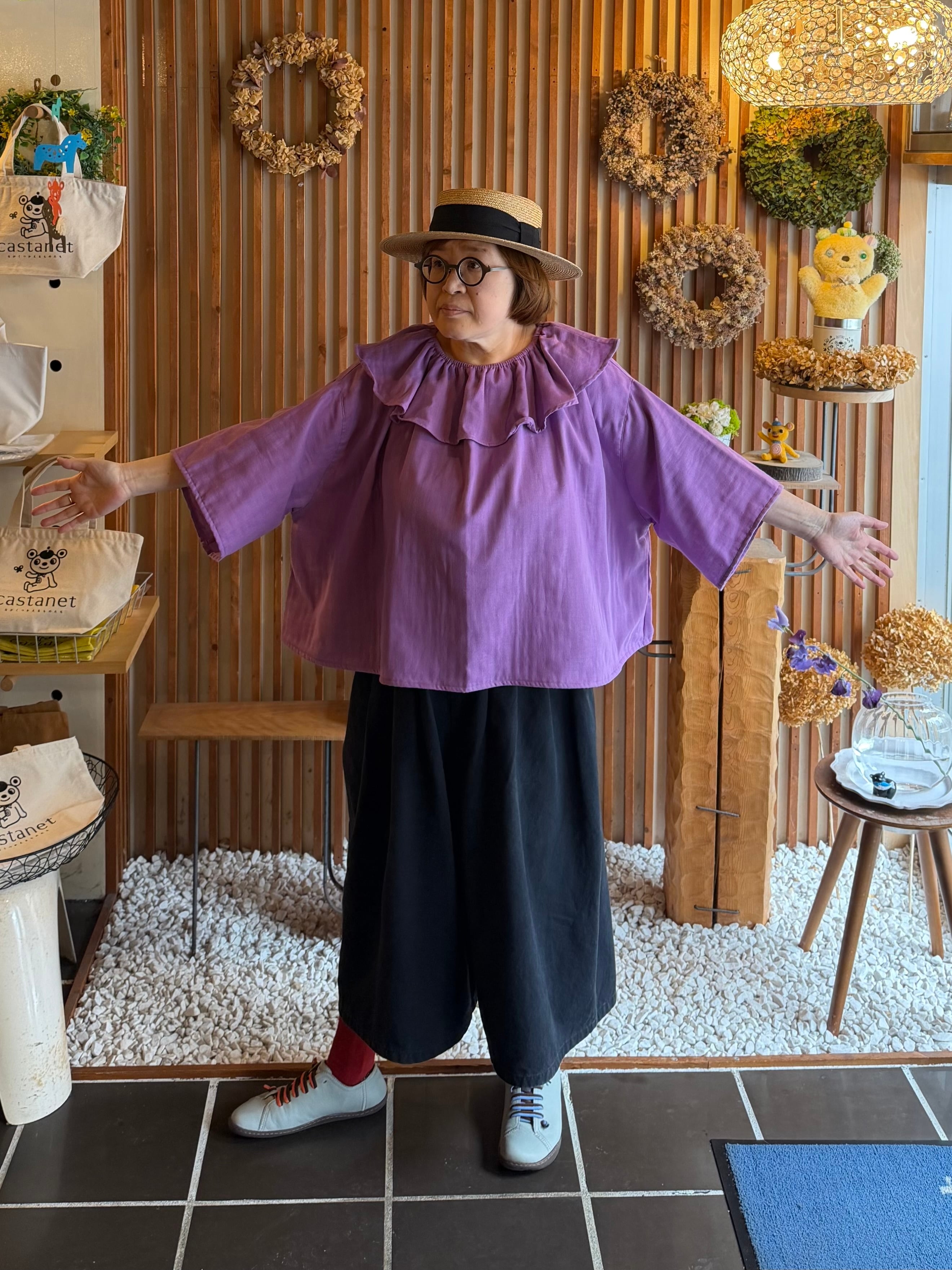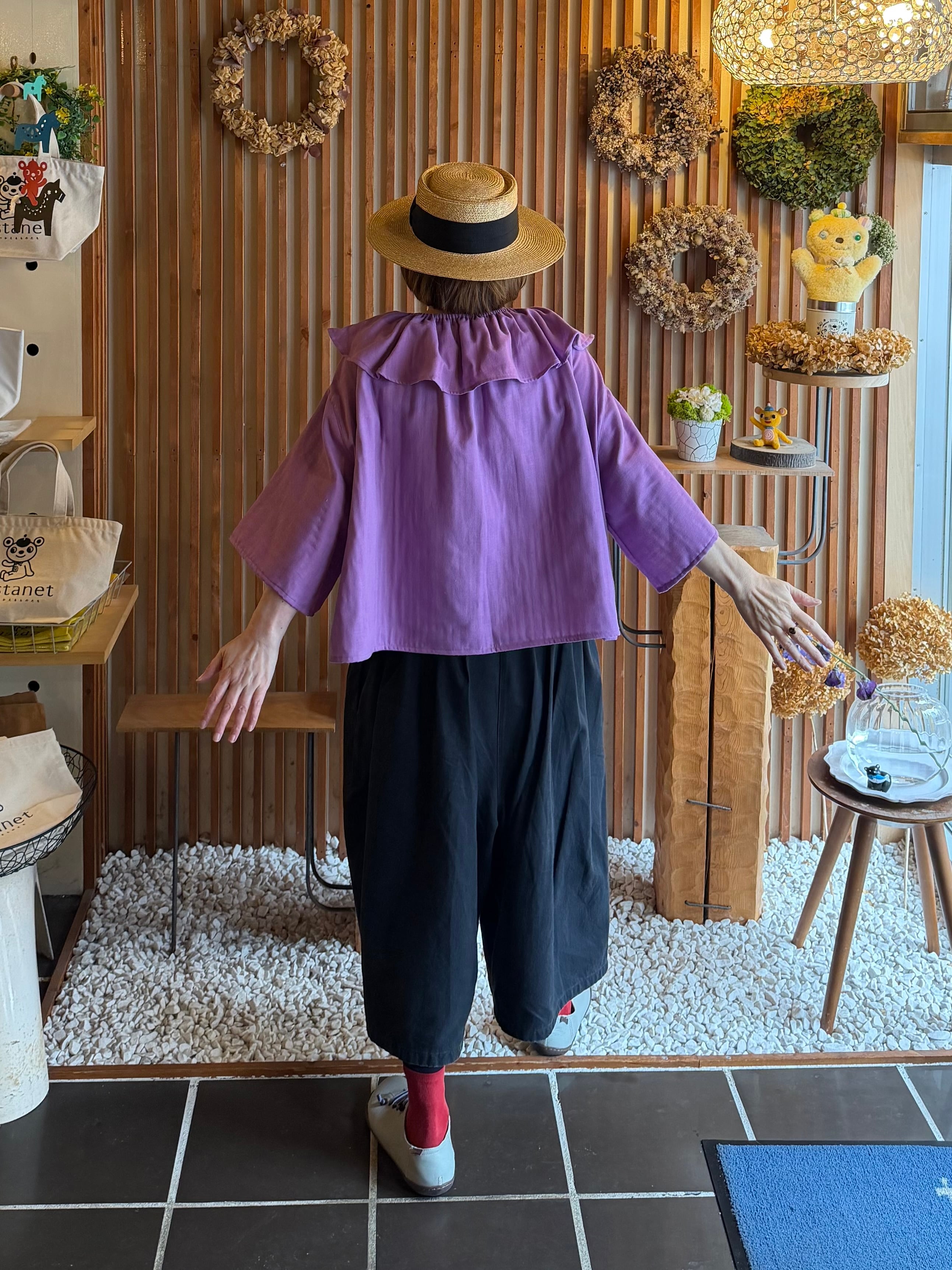 ガーゼ『フリル・ビックカラーブラウス半袖』ラベンダー