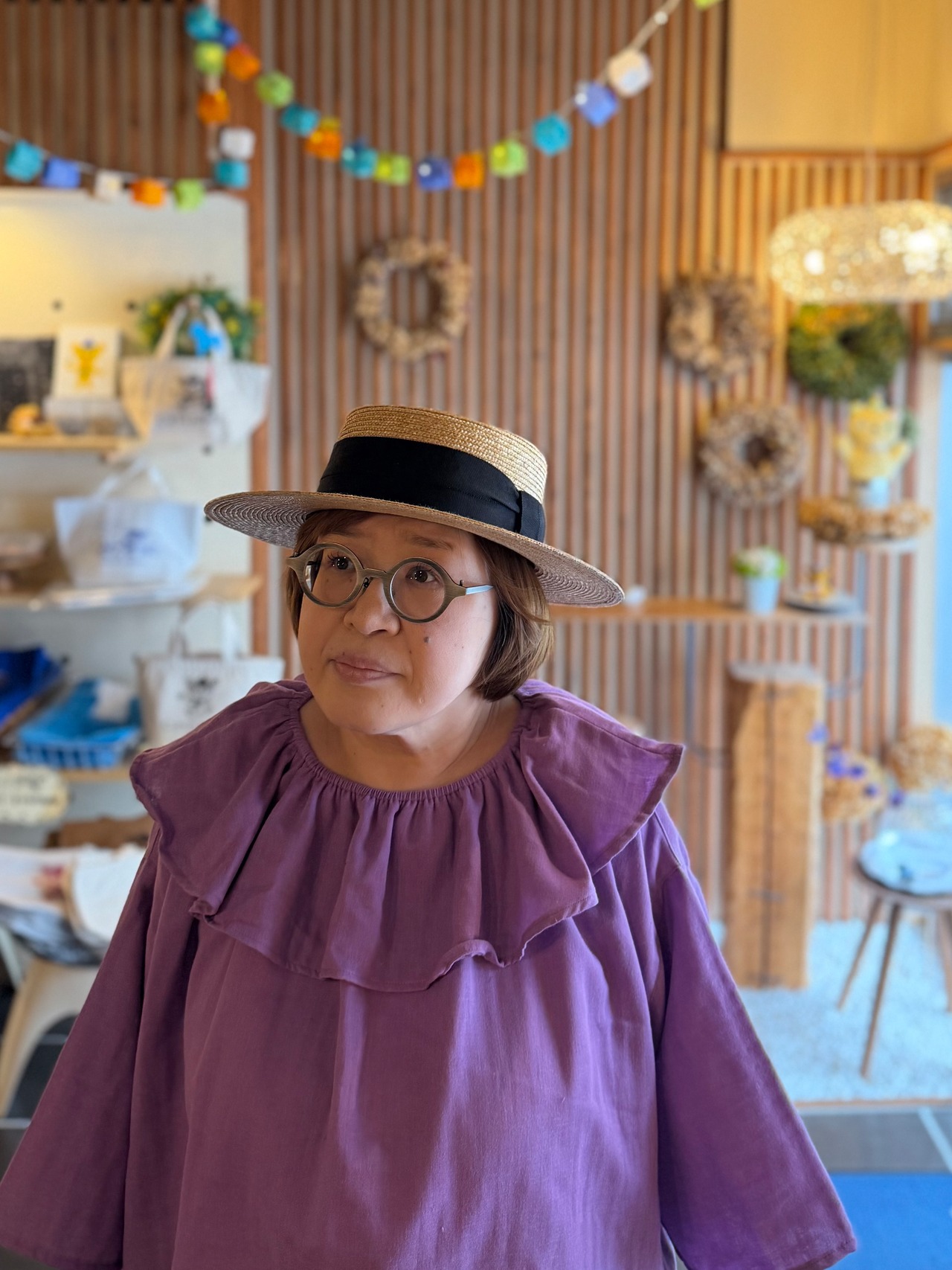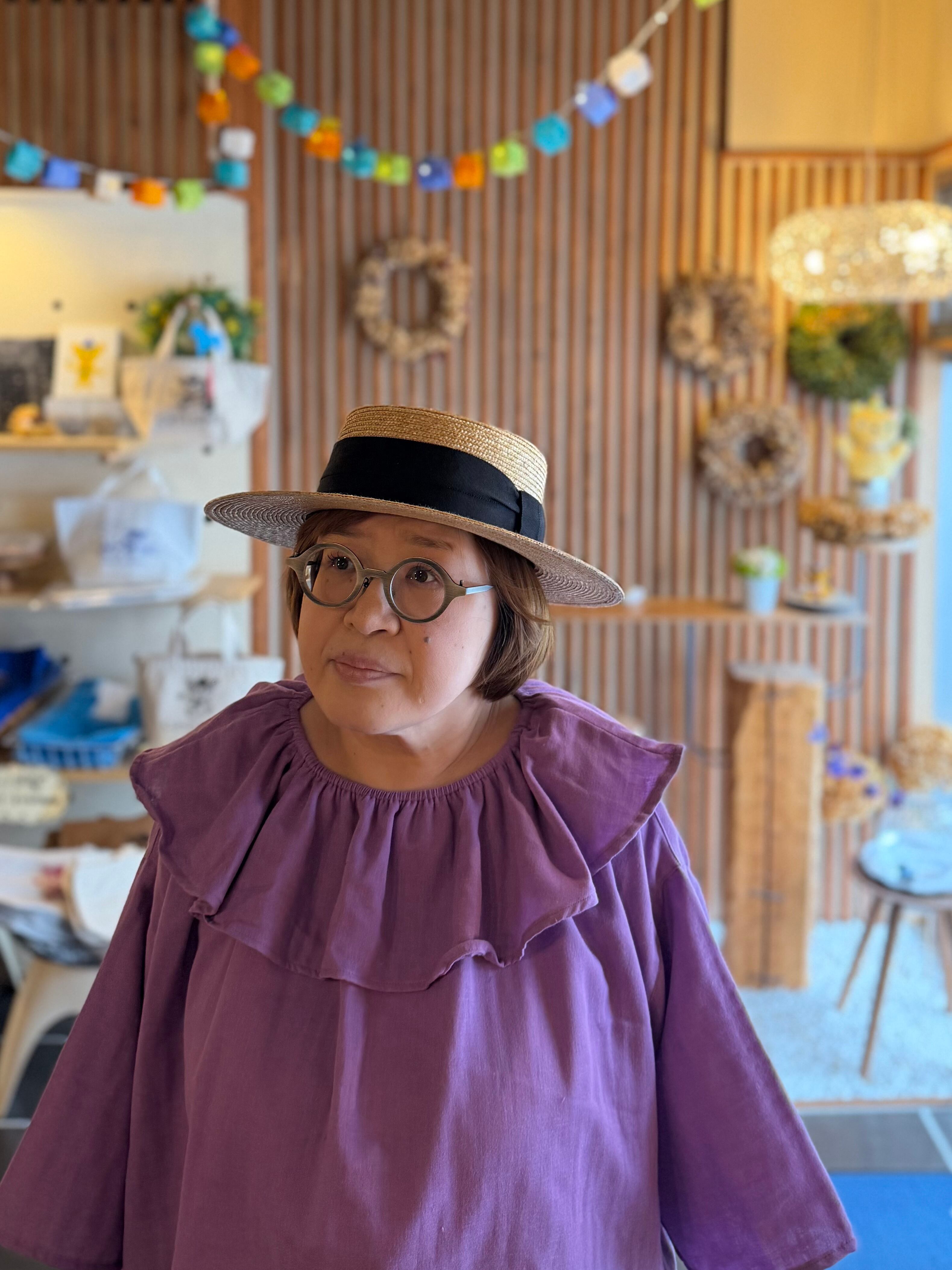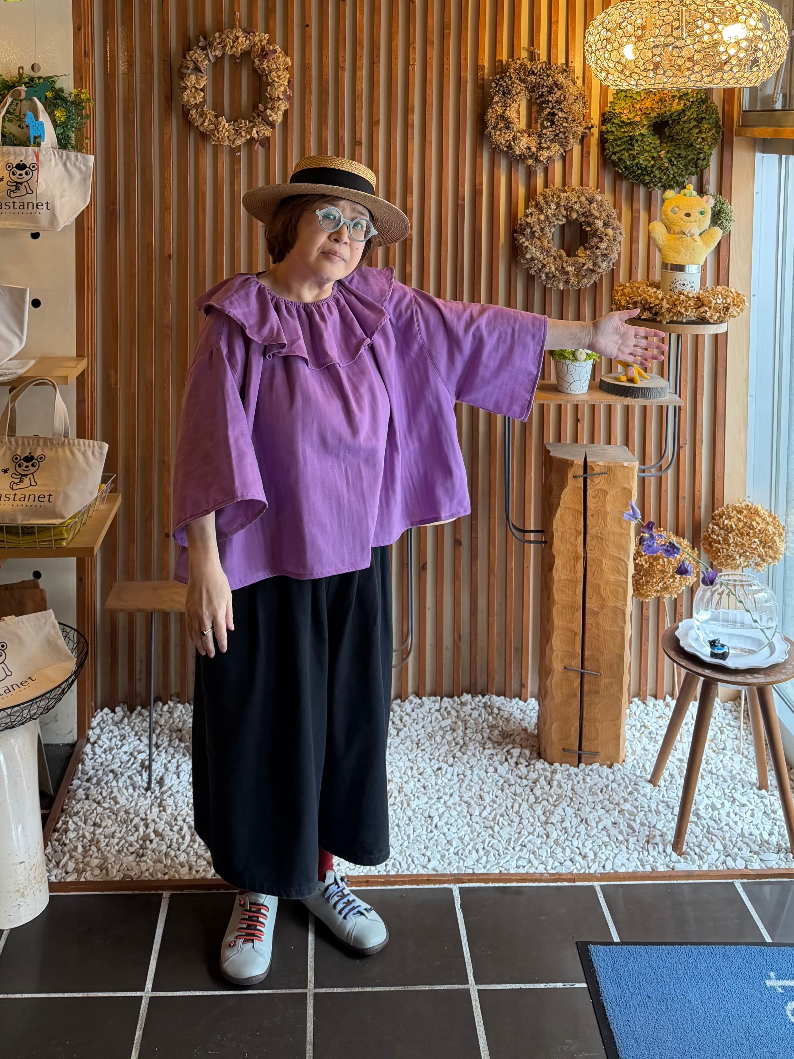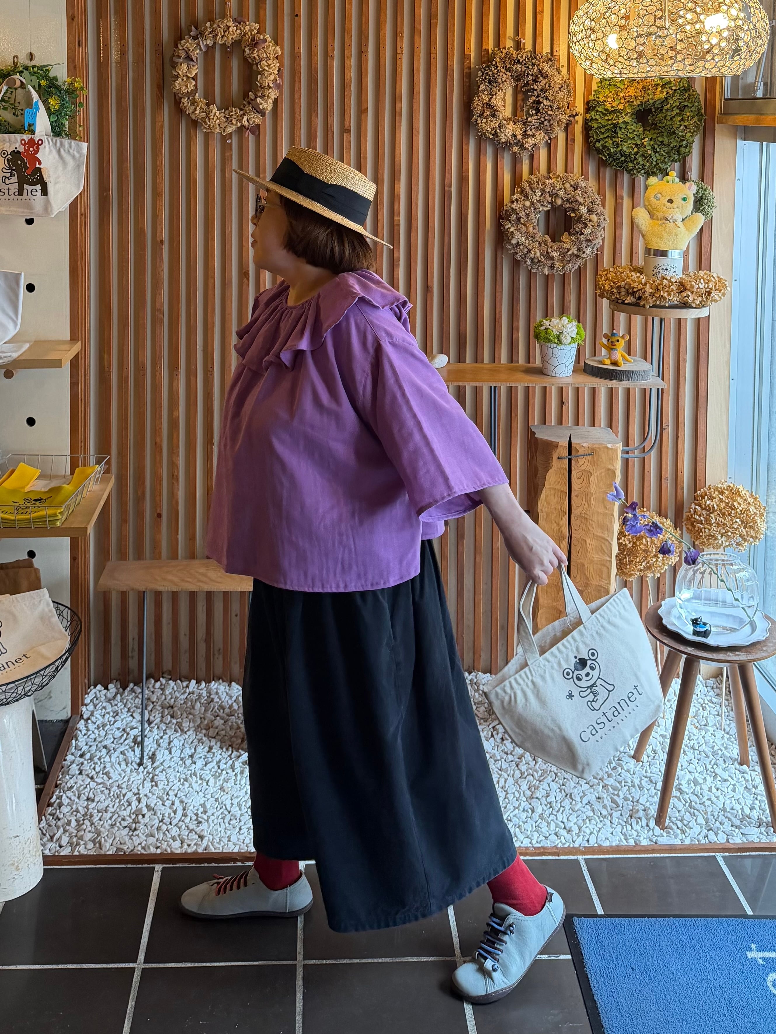 ガーゼ『フリル・ビックカラーブラウス半袖』ラベンダー