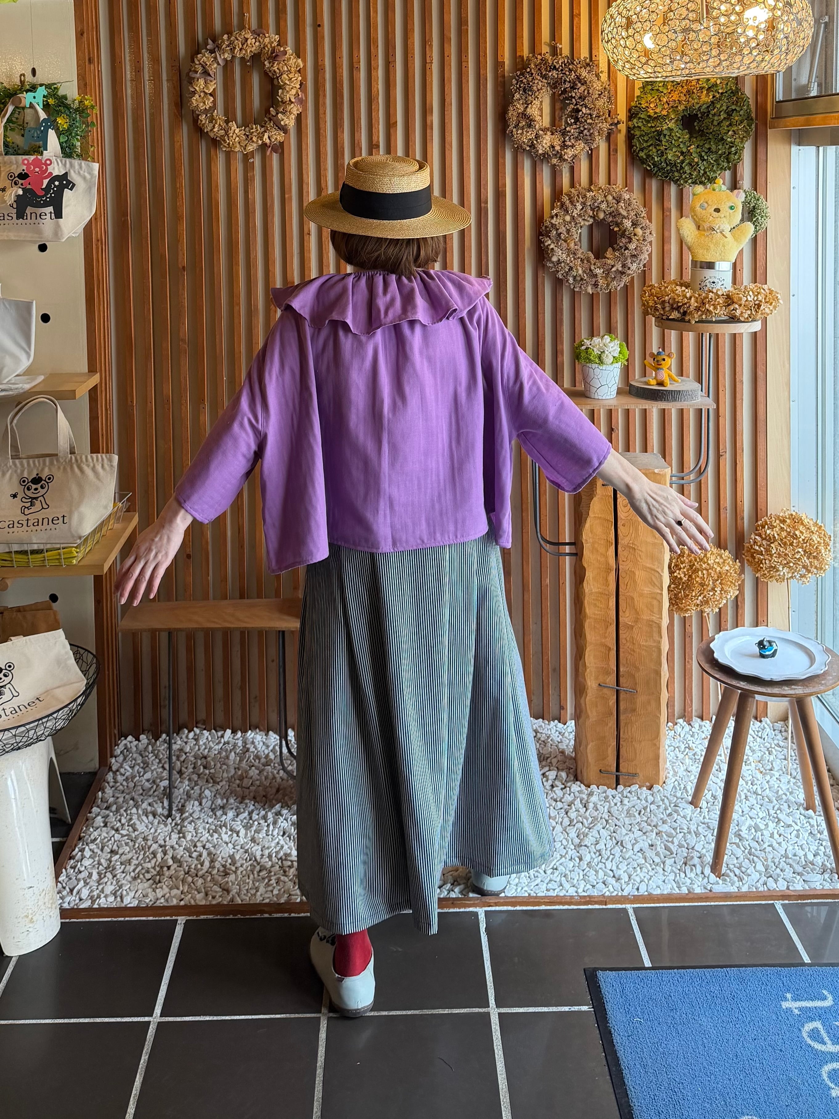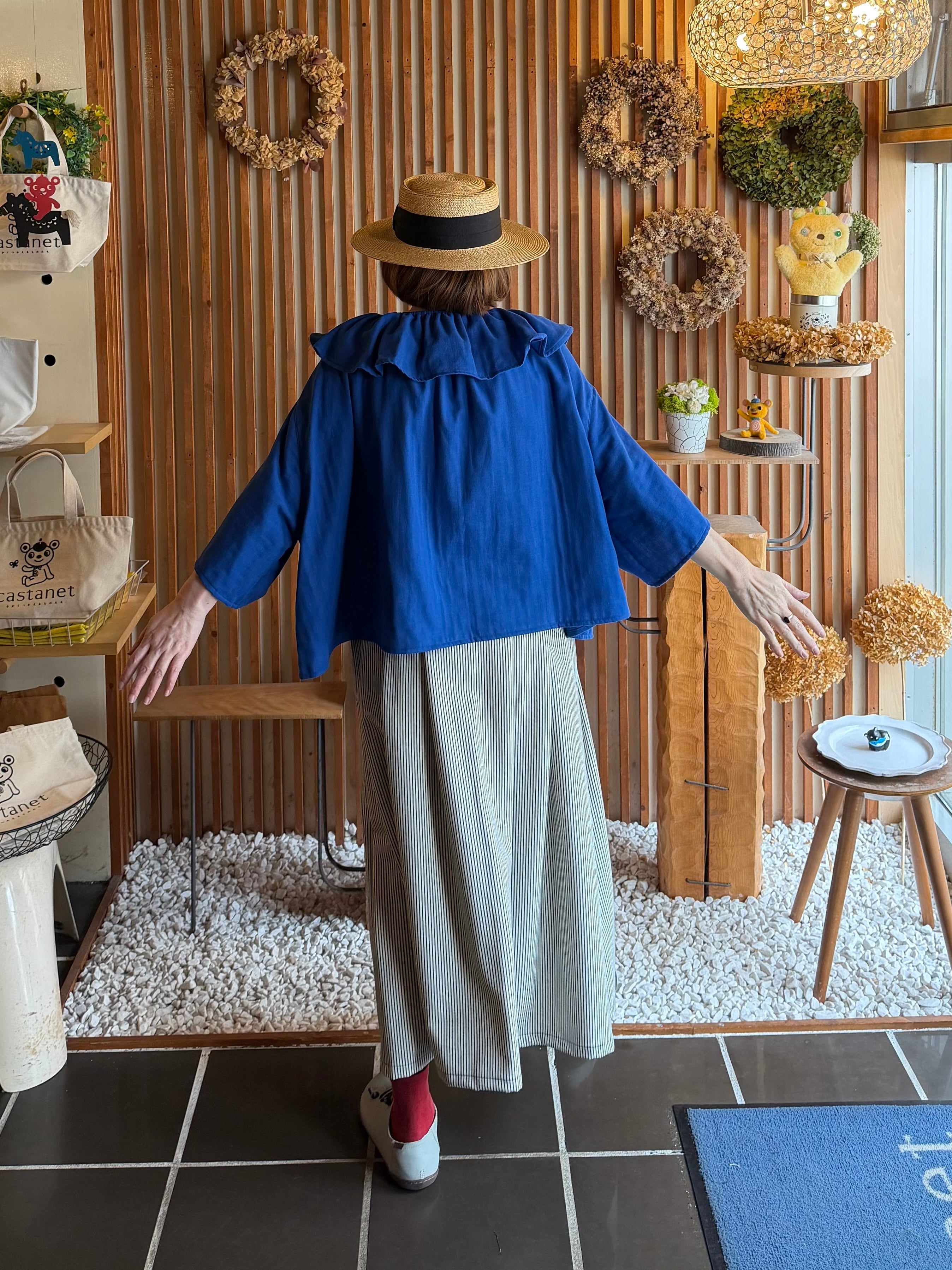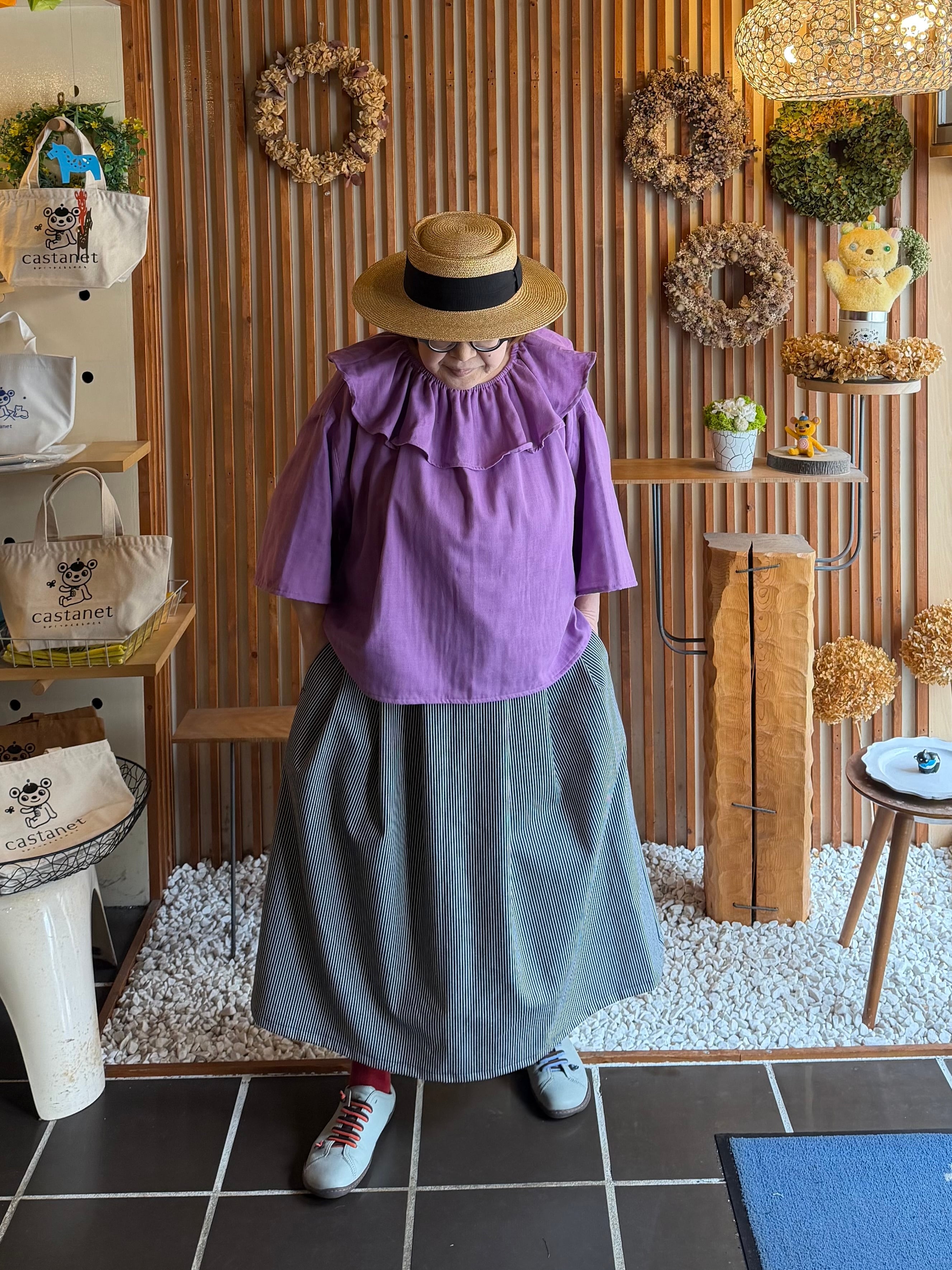 『タック・スカート』ヒッコリーデニム
