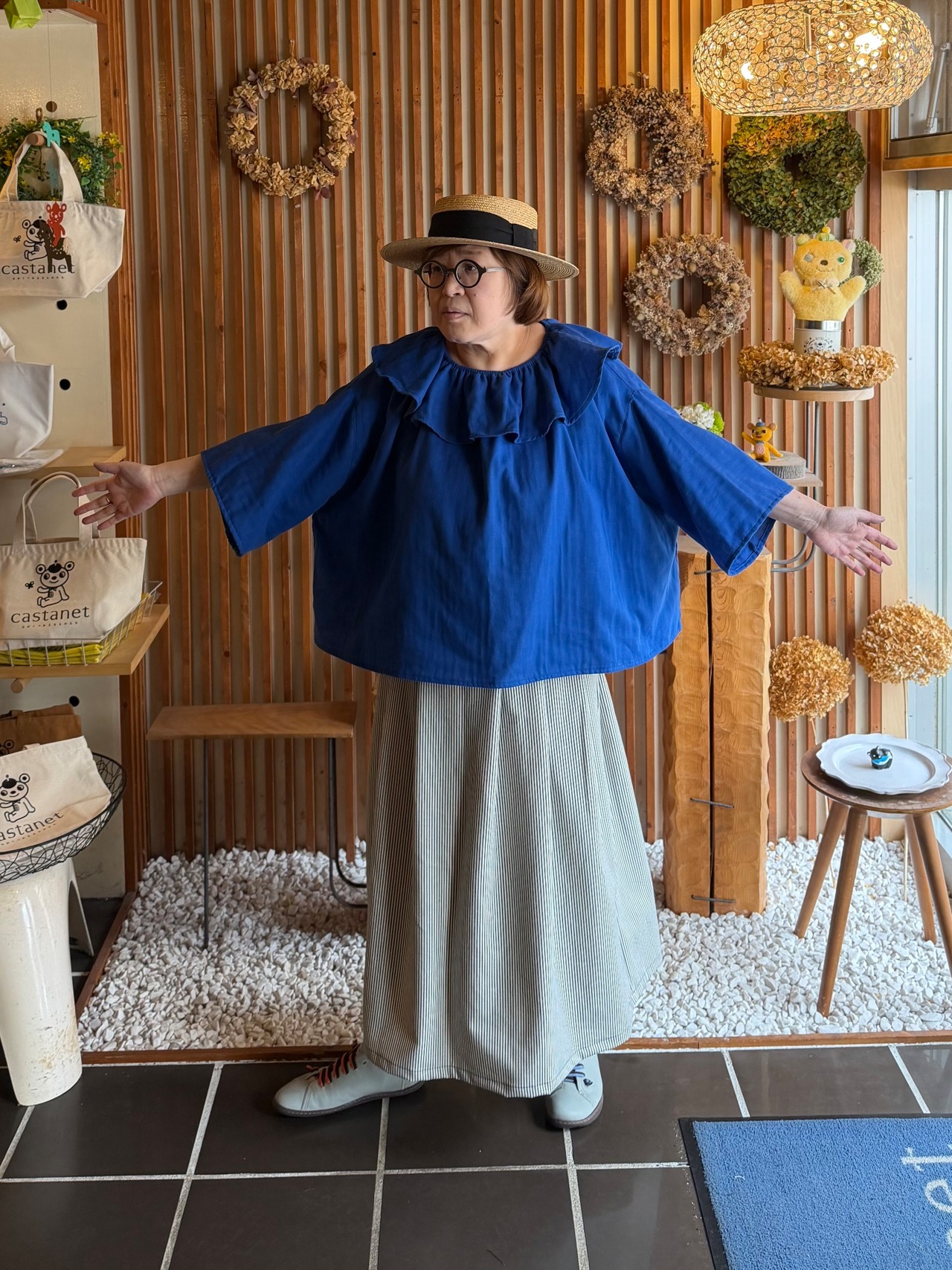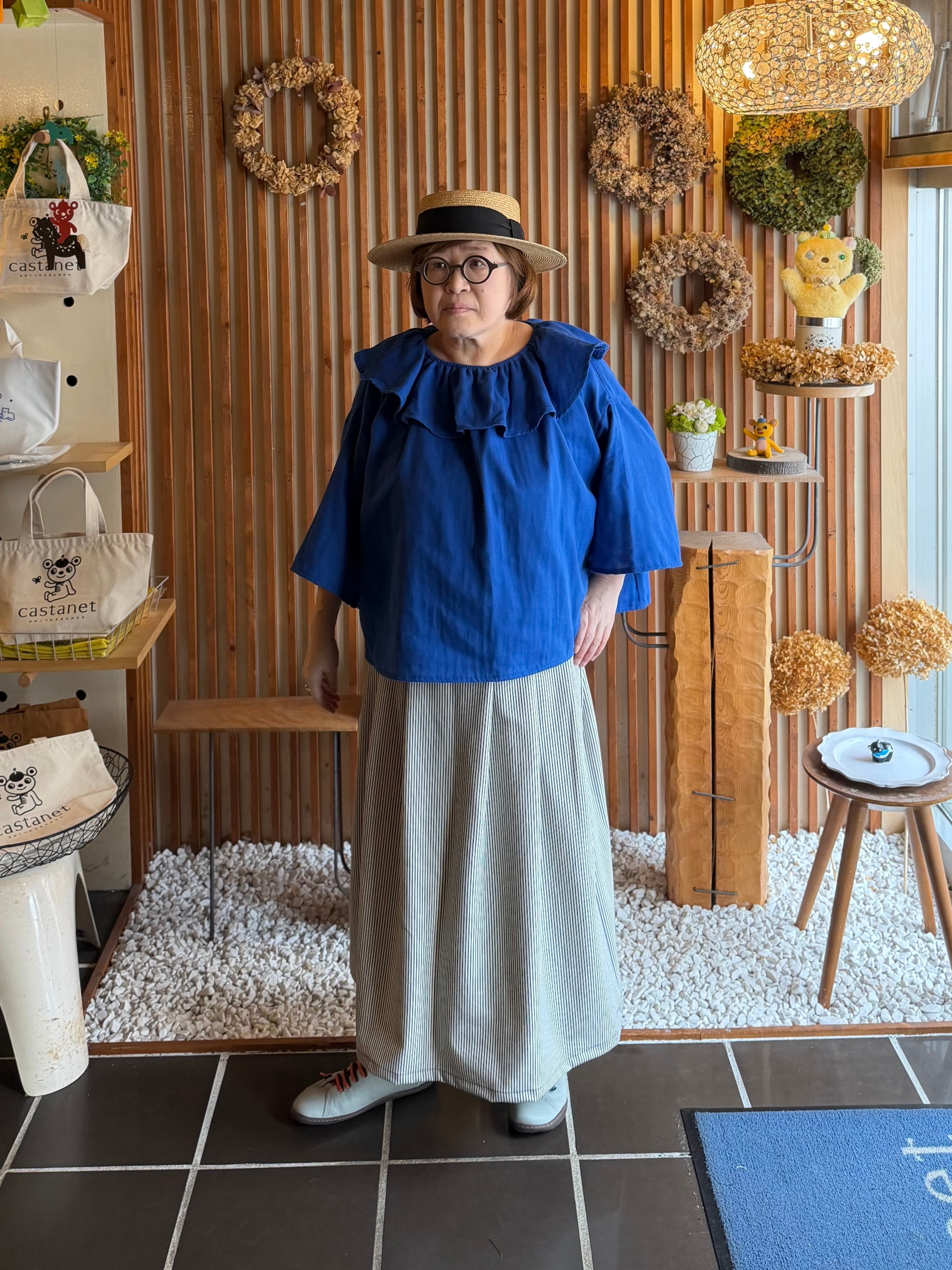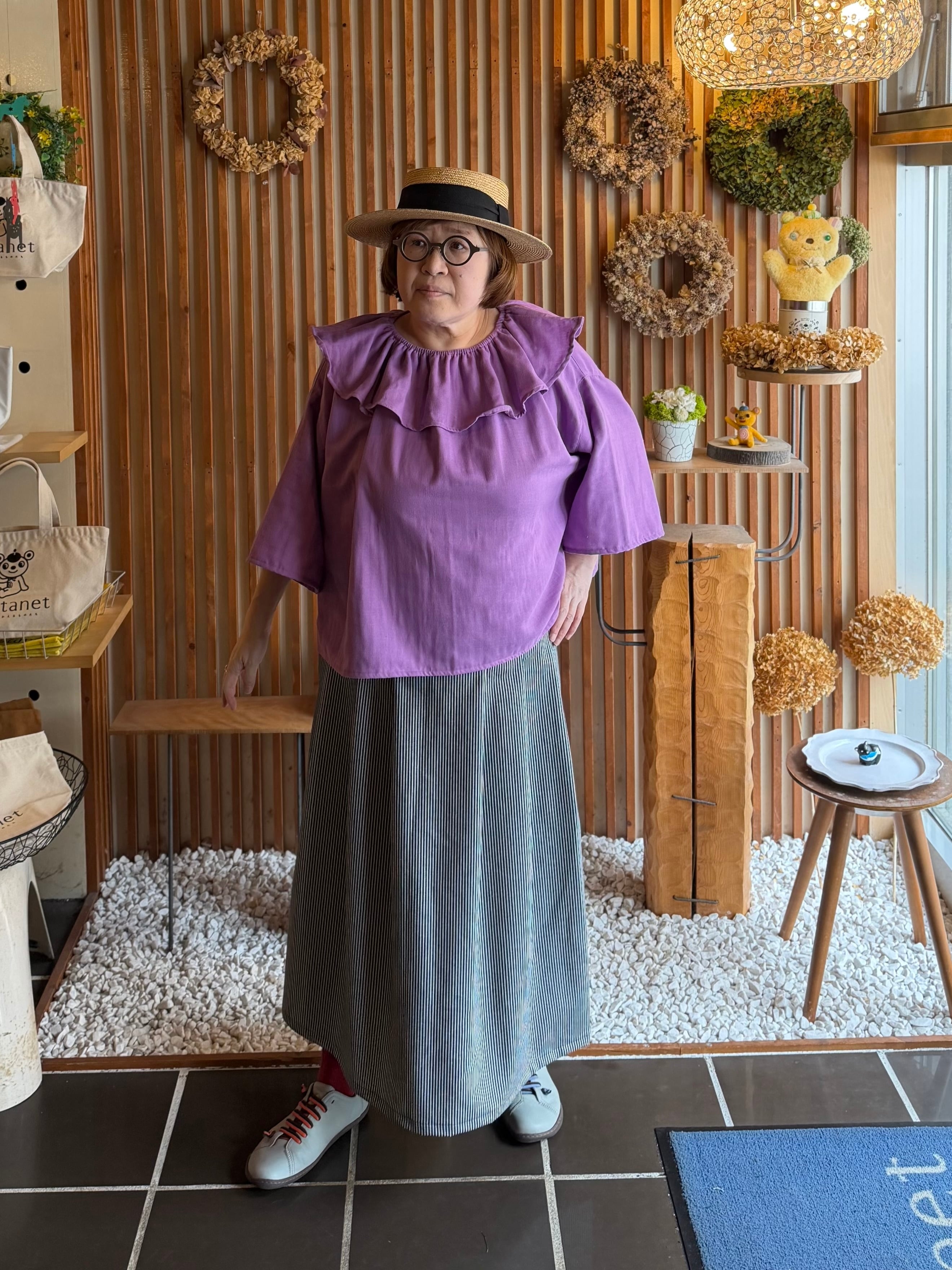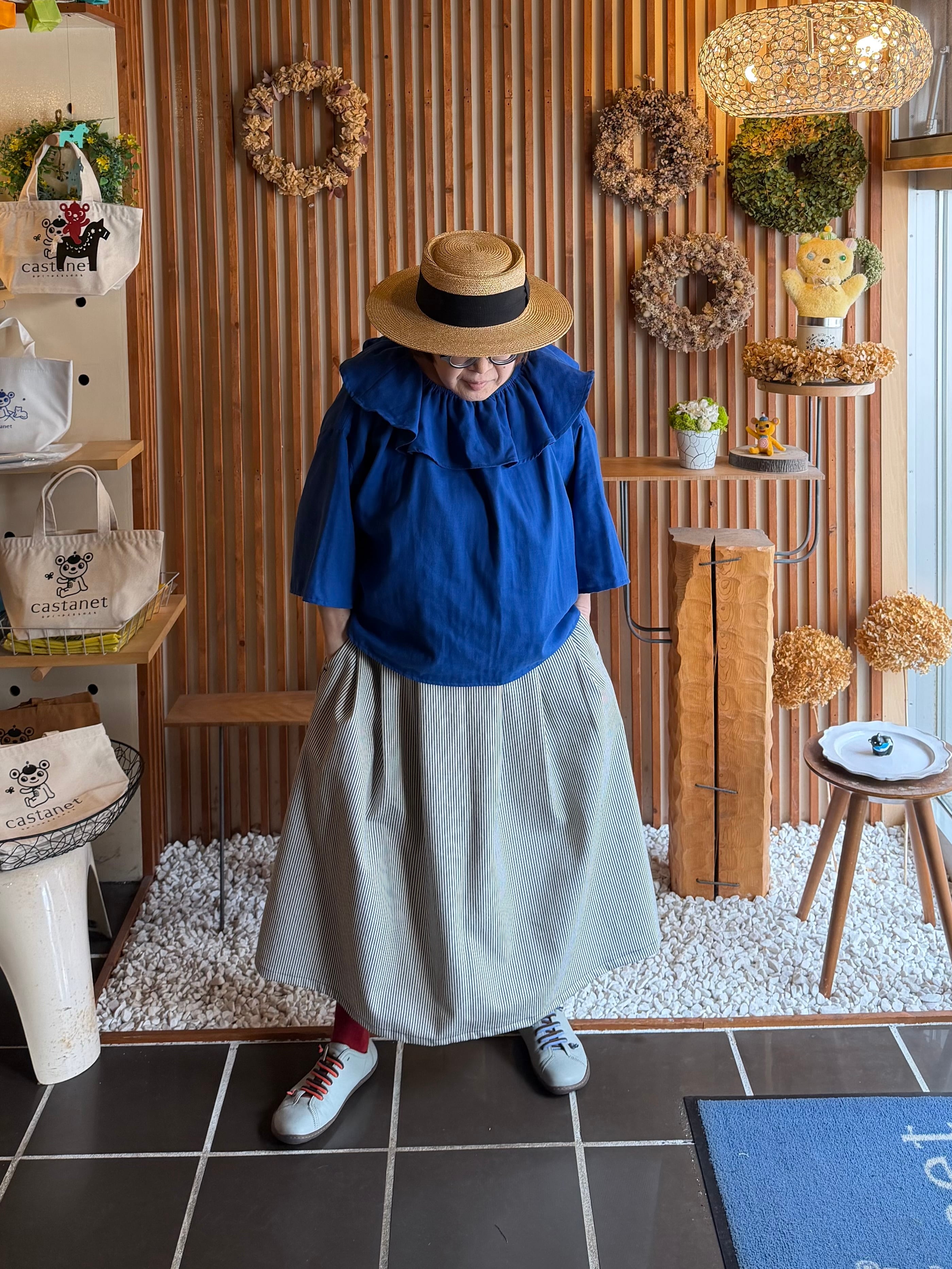 『タック・スカート』ヒッコリーデニム