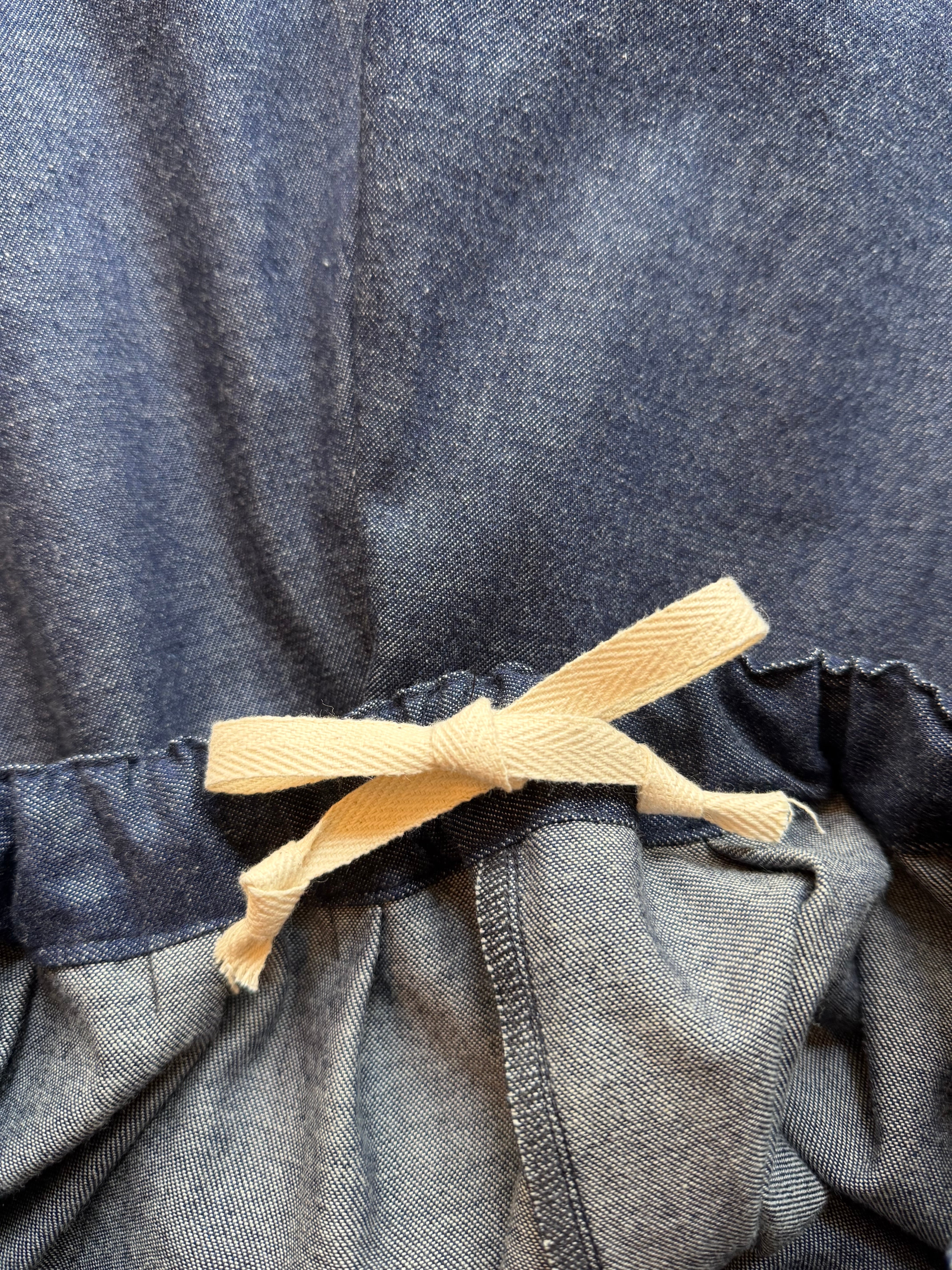ウエスト部分はタックが施され、太めの平ゴムと紐を通し、