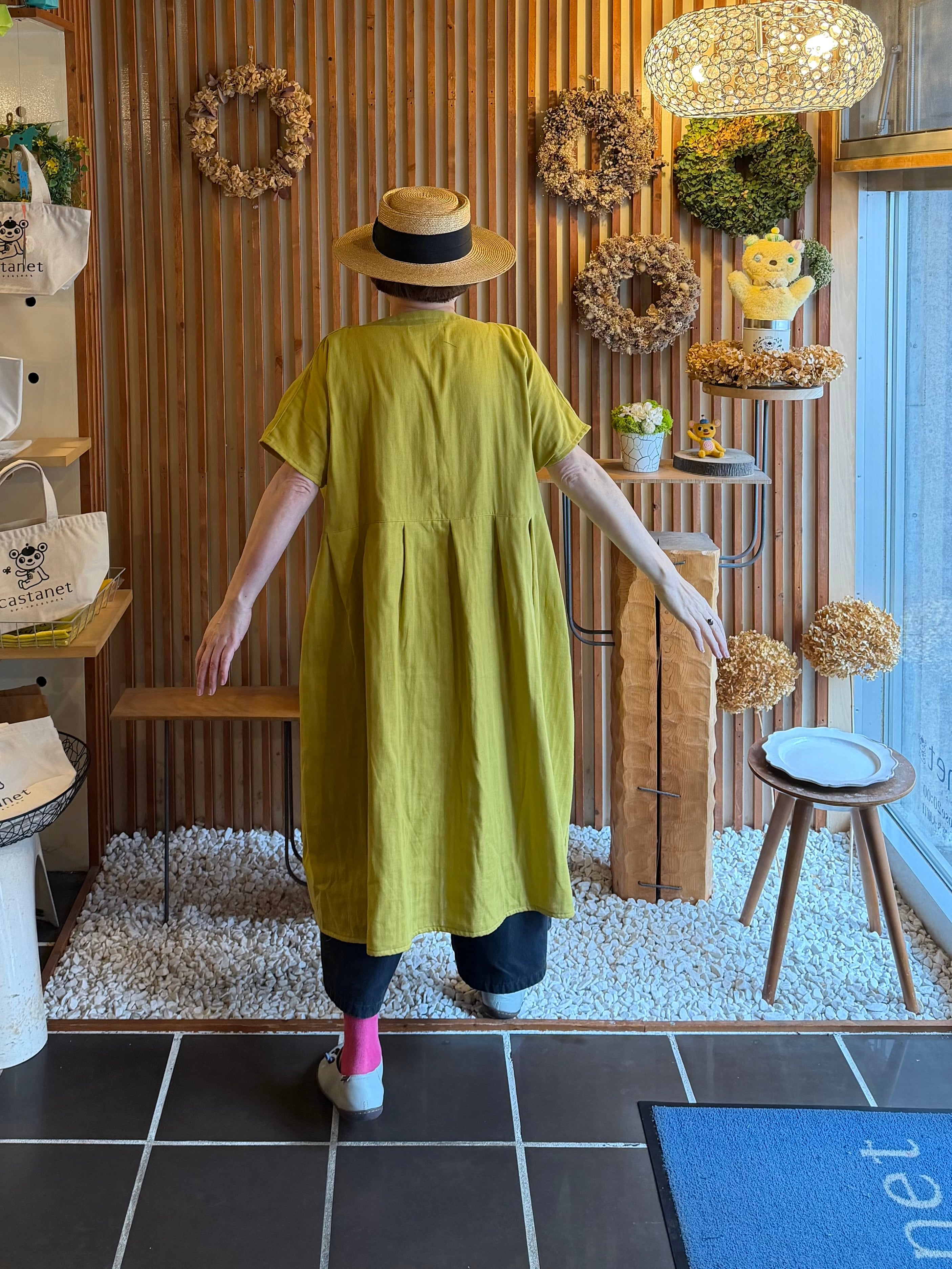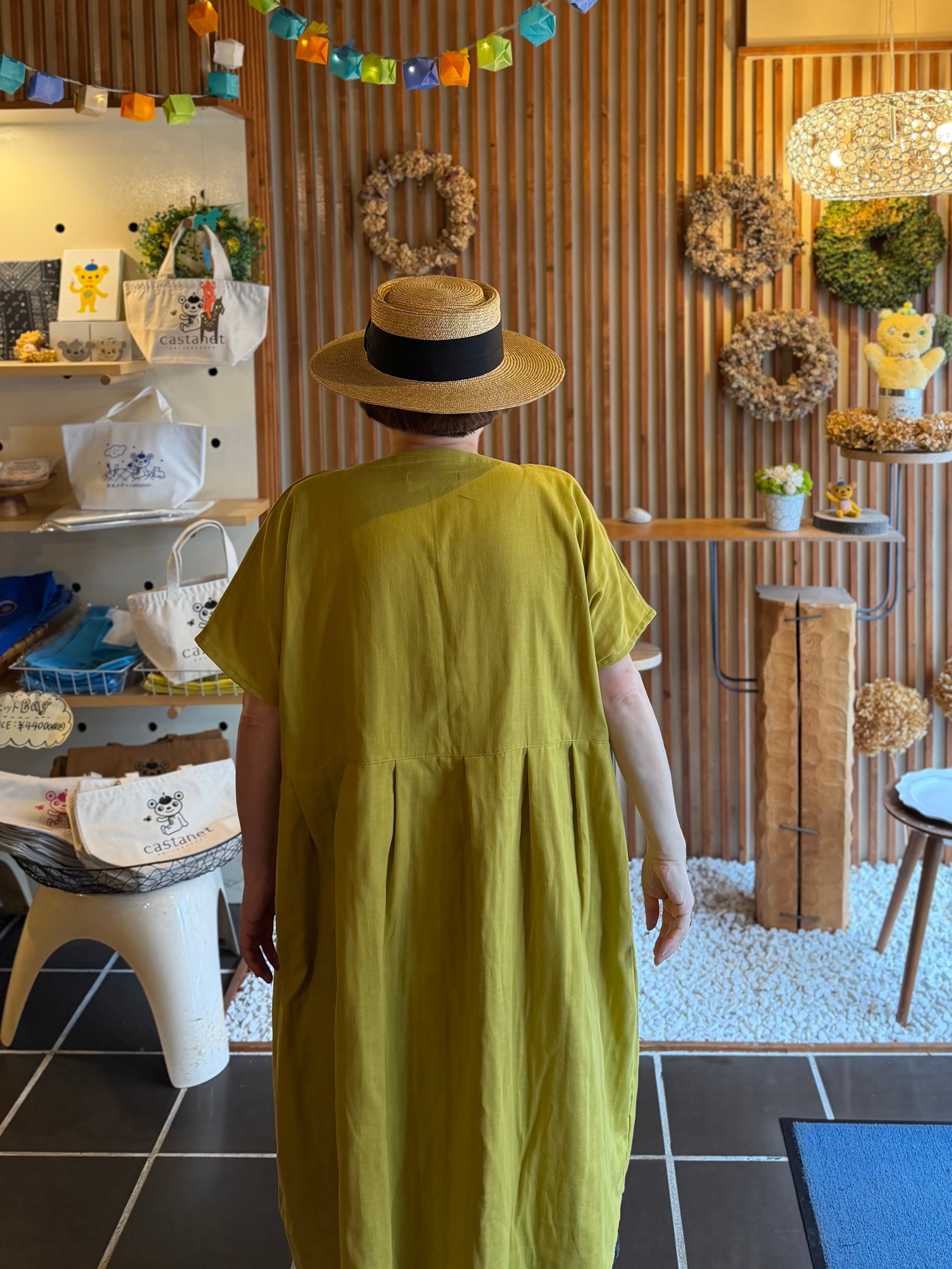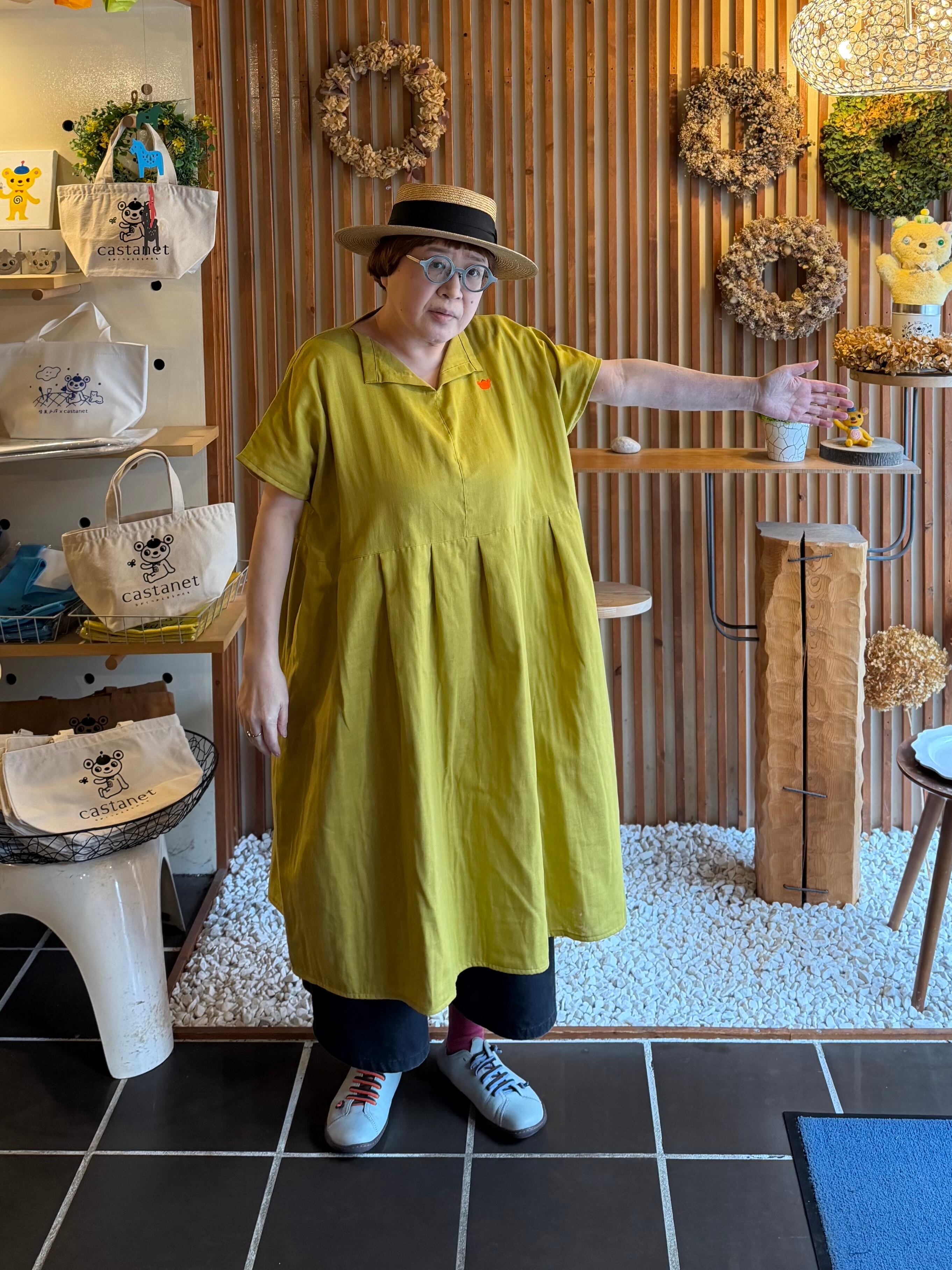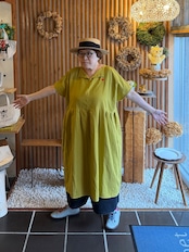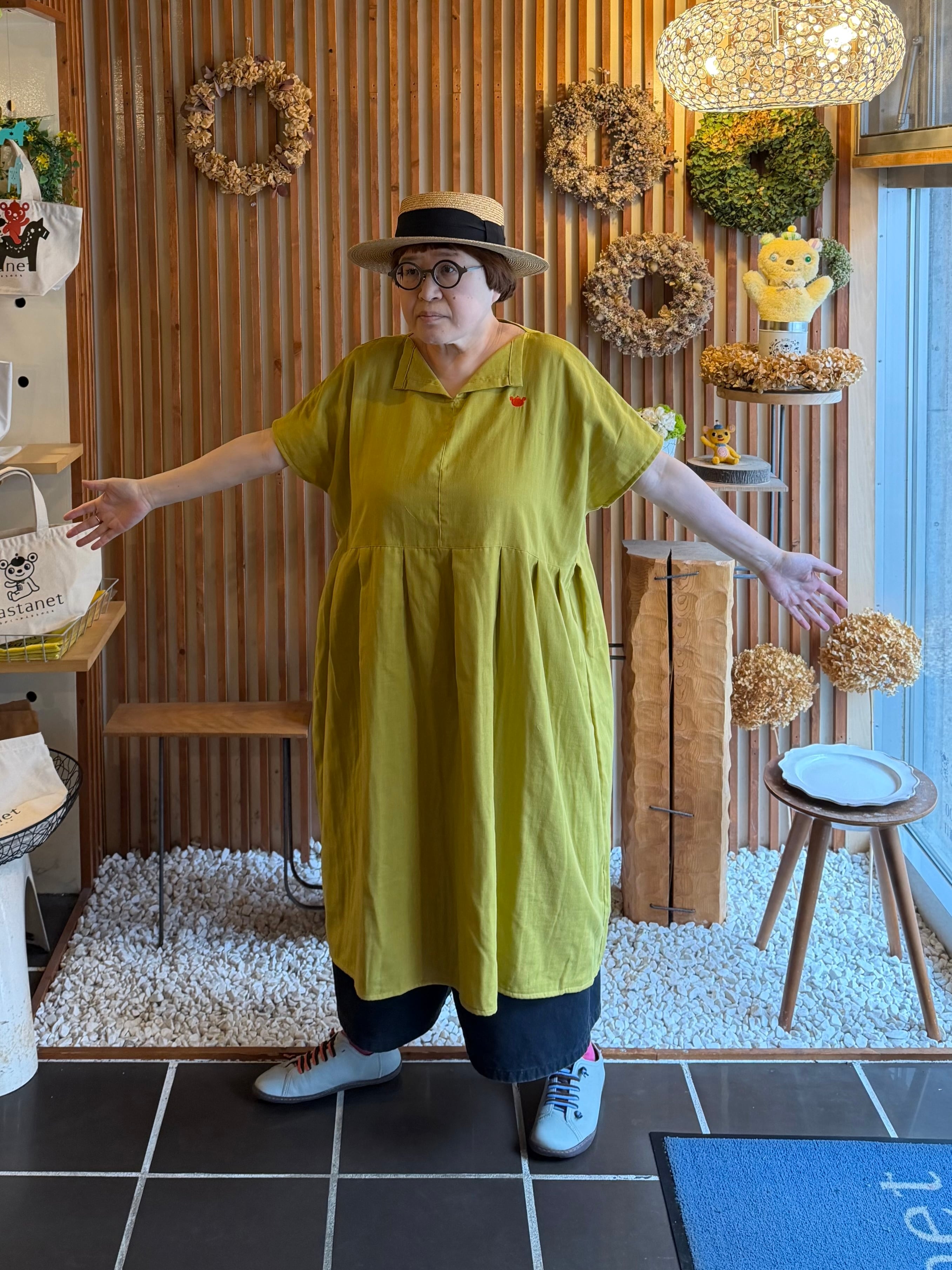 『ガーゼ』スキッパーワンピース半袖・マスタード