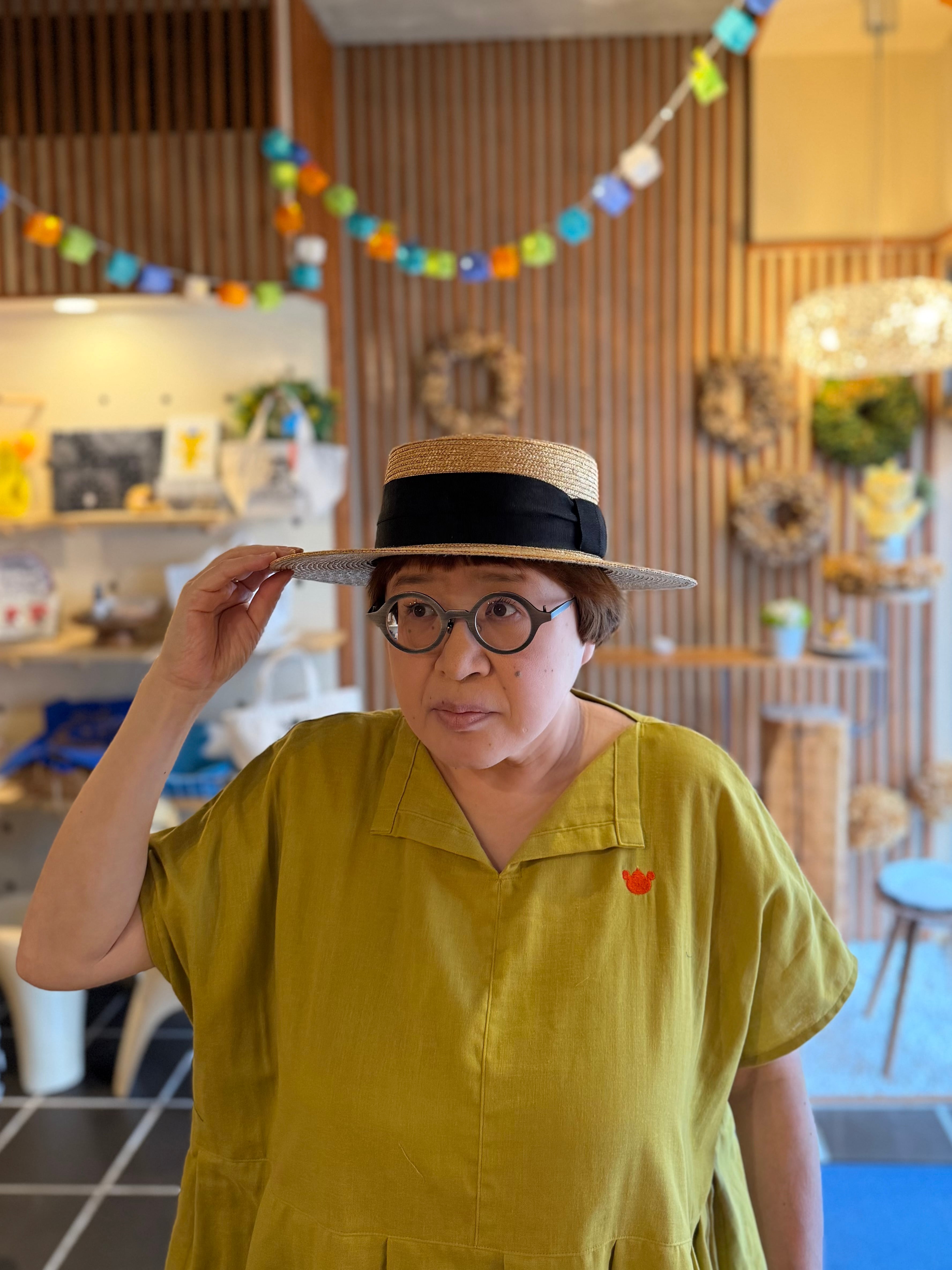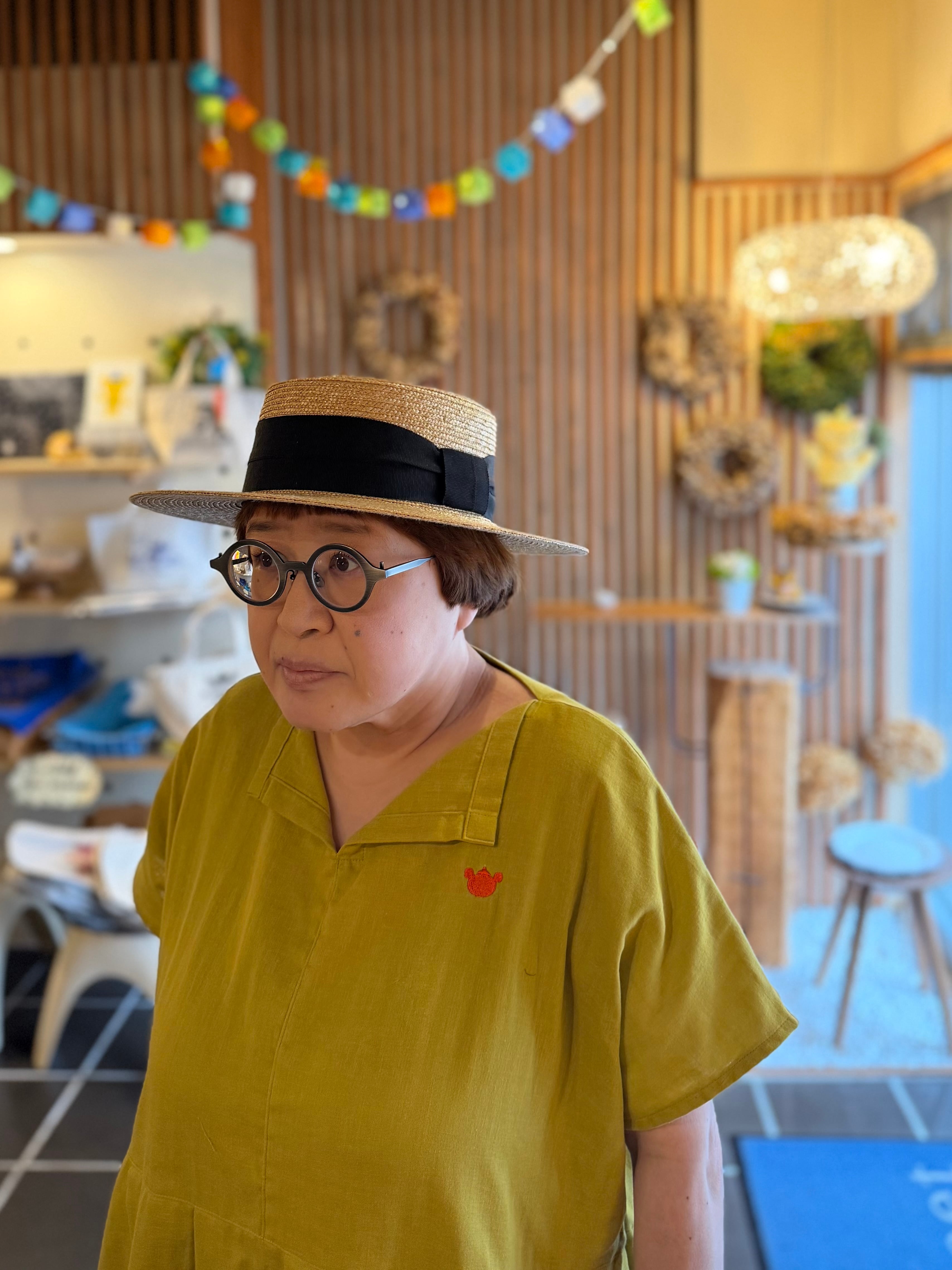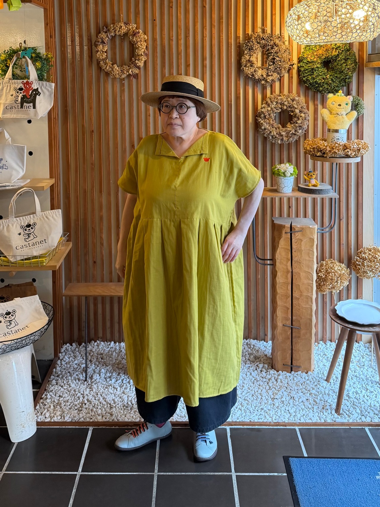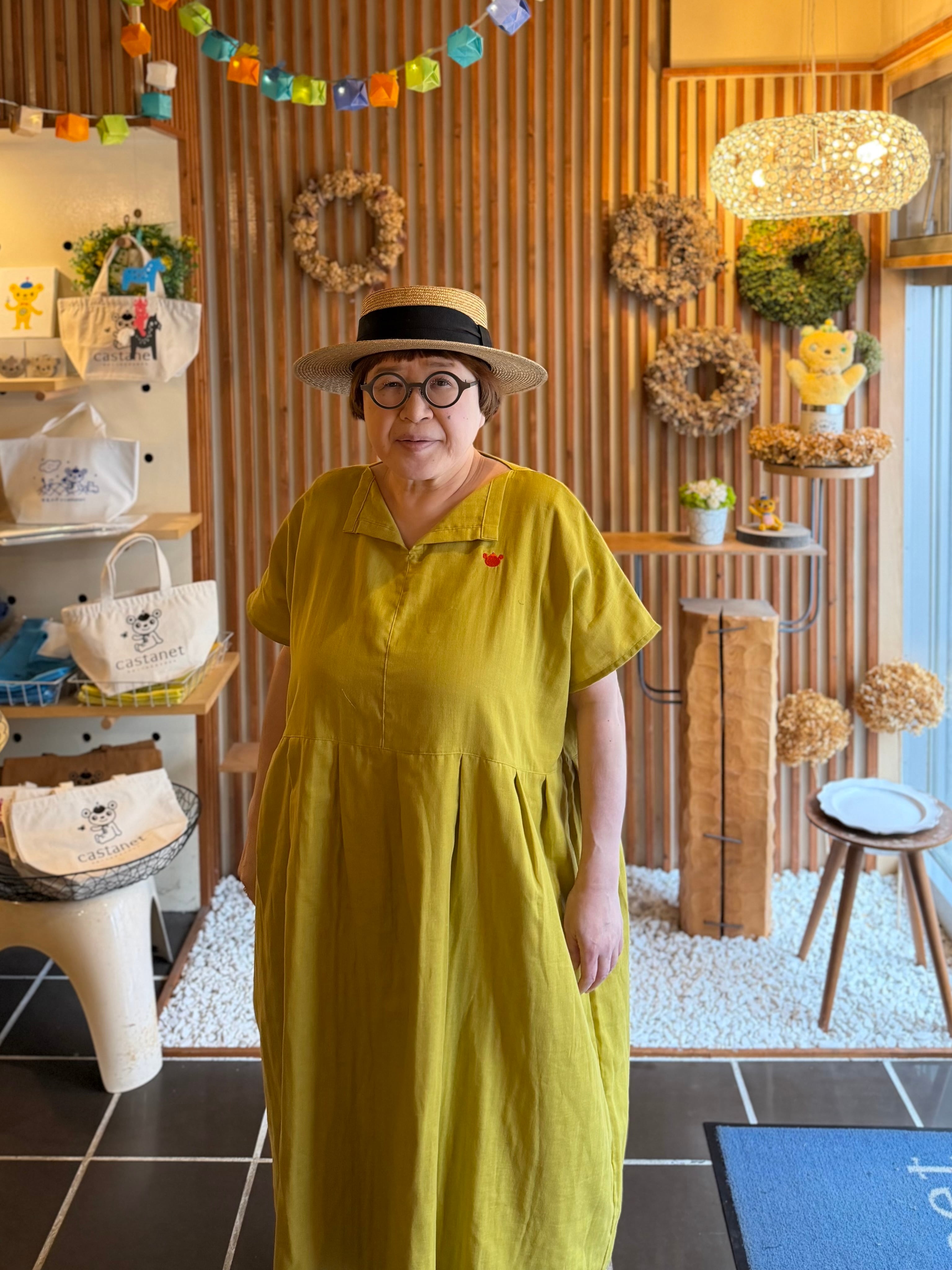 『ガーゼ』スキッパーワンピース半袖・マスタード