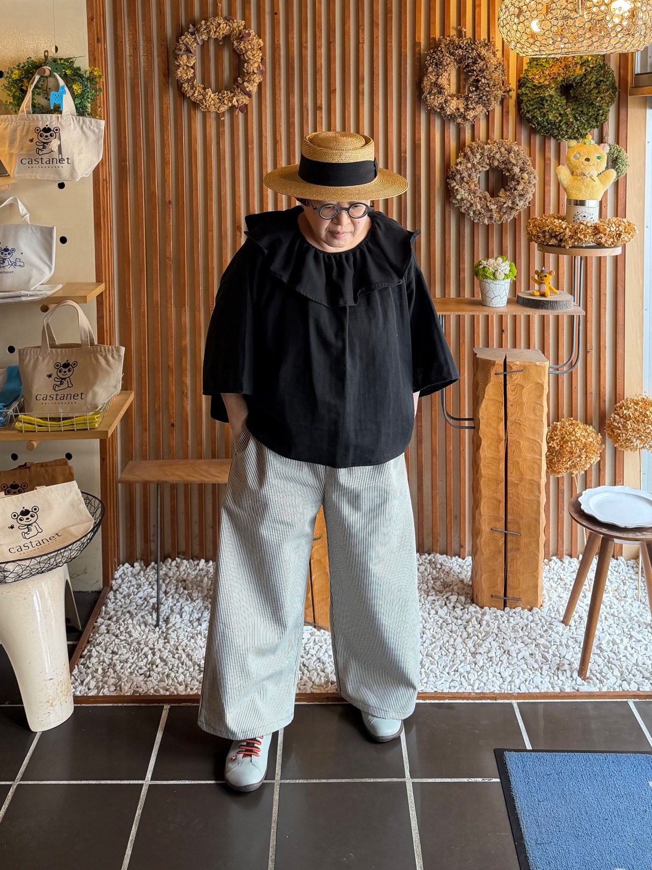 ウエストはゴムと紐なのでリラックスして履いていただけます。