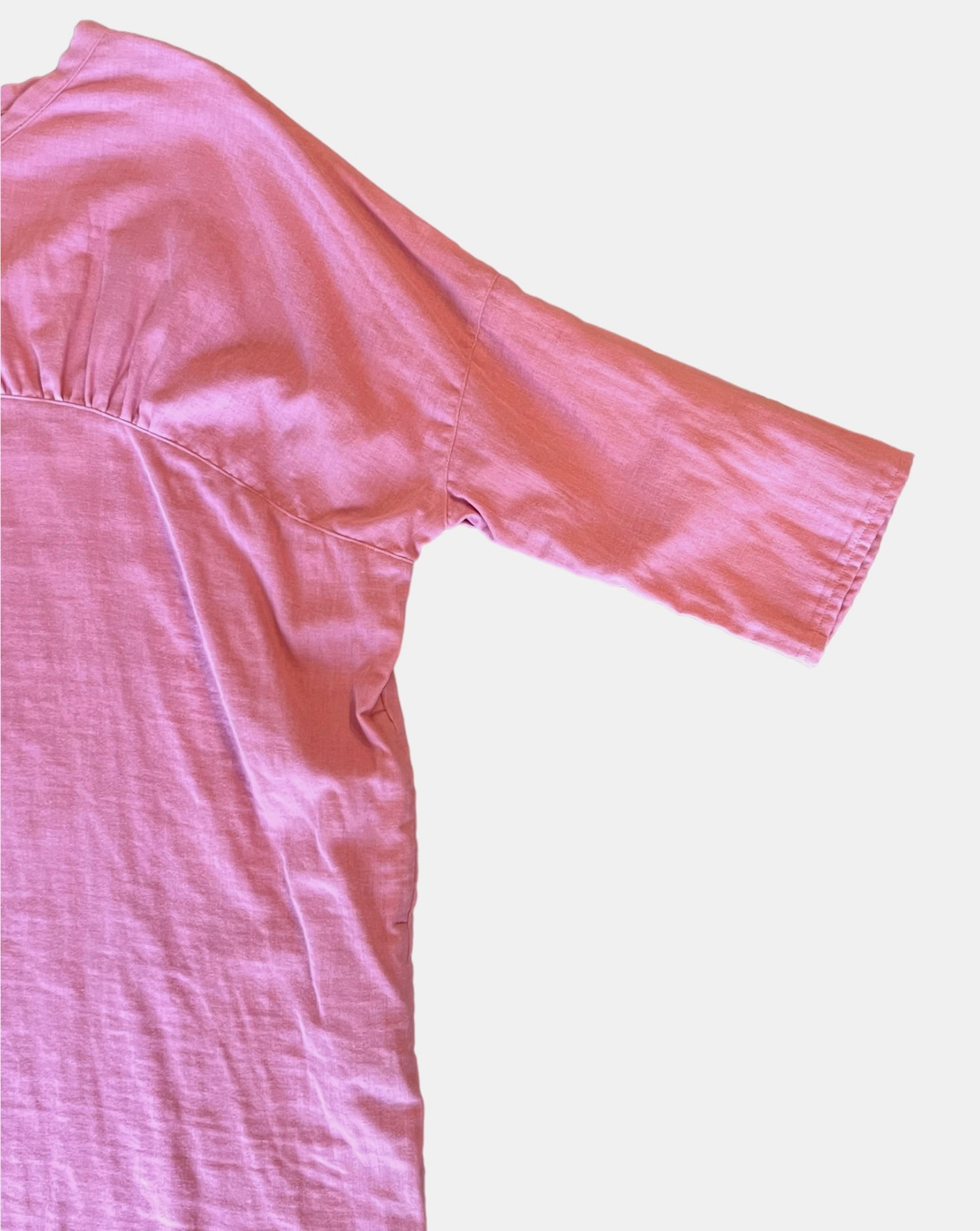 ガーゼ『Vネックギャザーワンピース長袖』ピンク