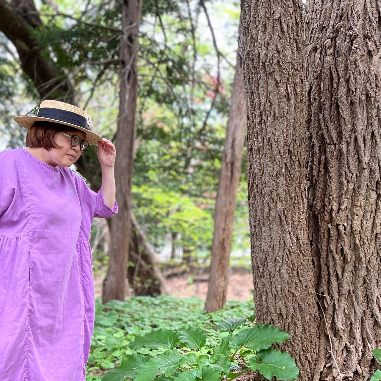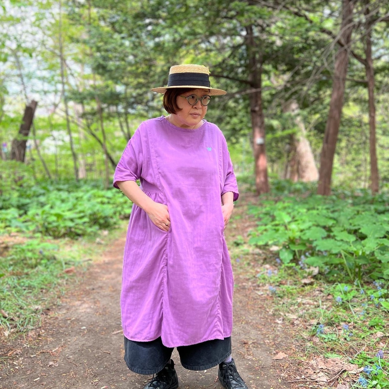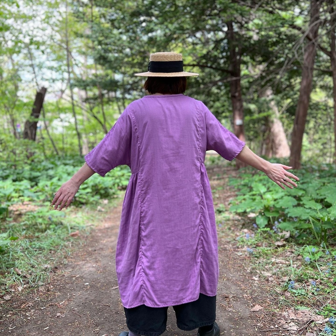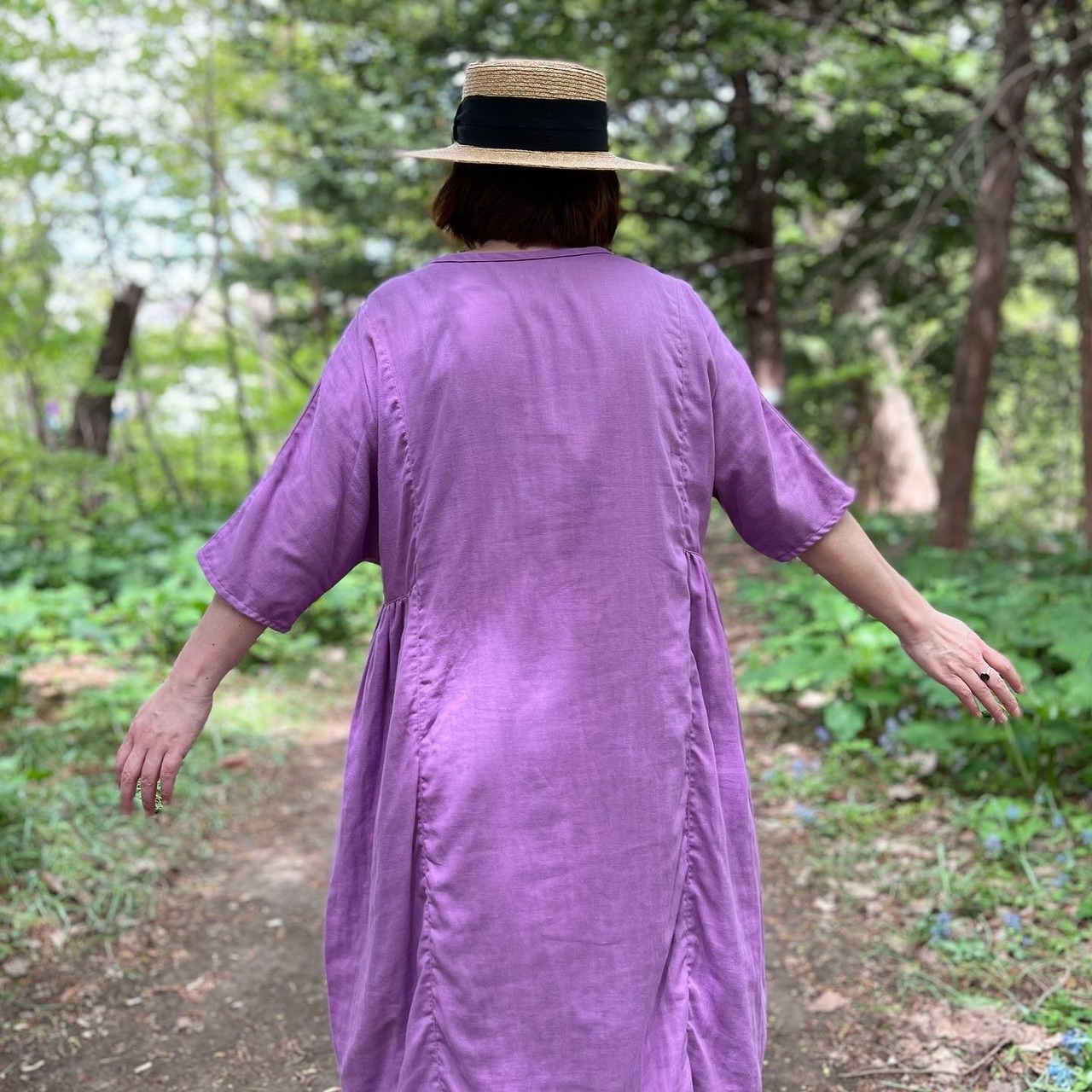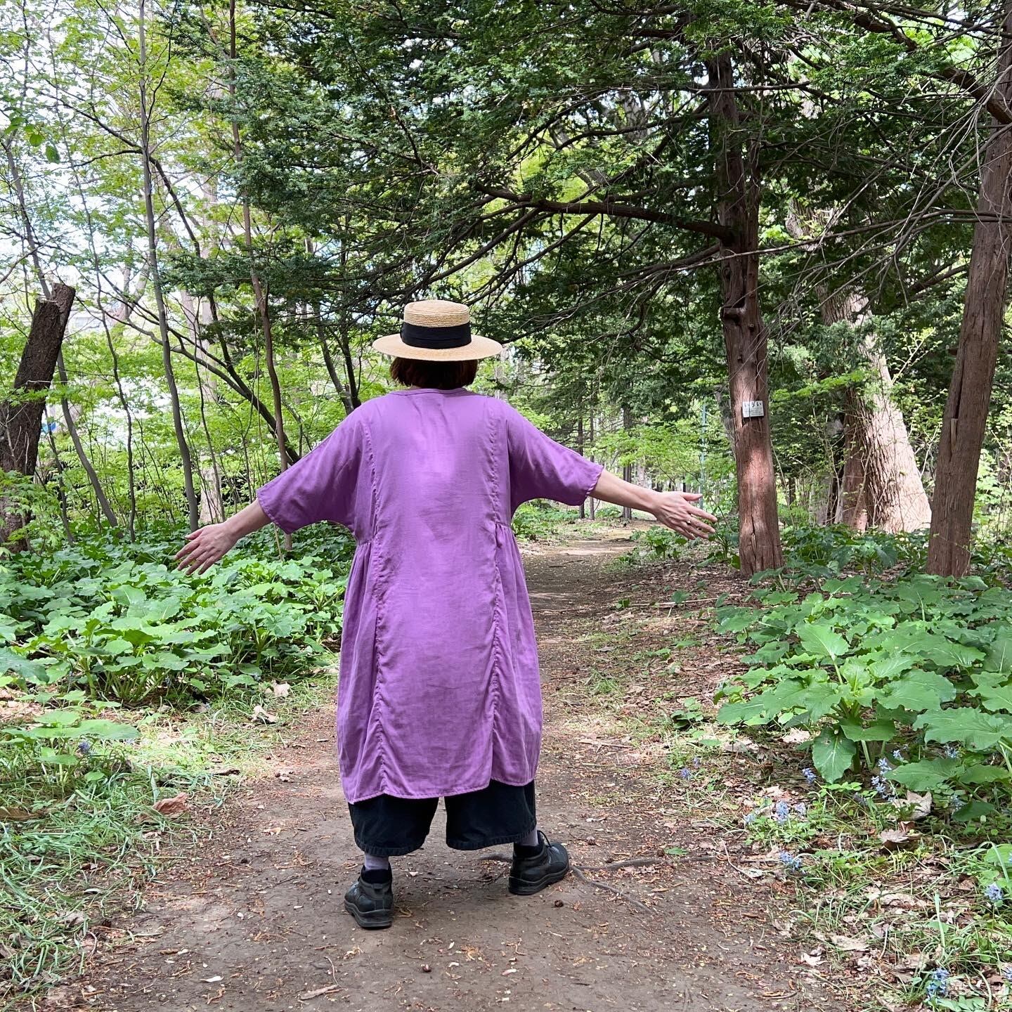 『ガーゼ』五分袖ロングワンピース・ラベンダー