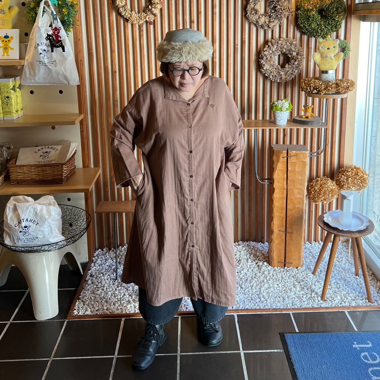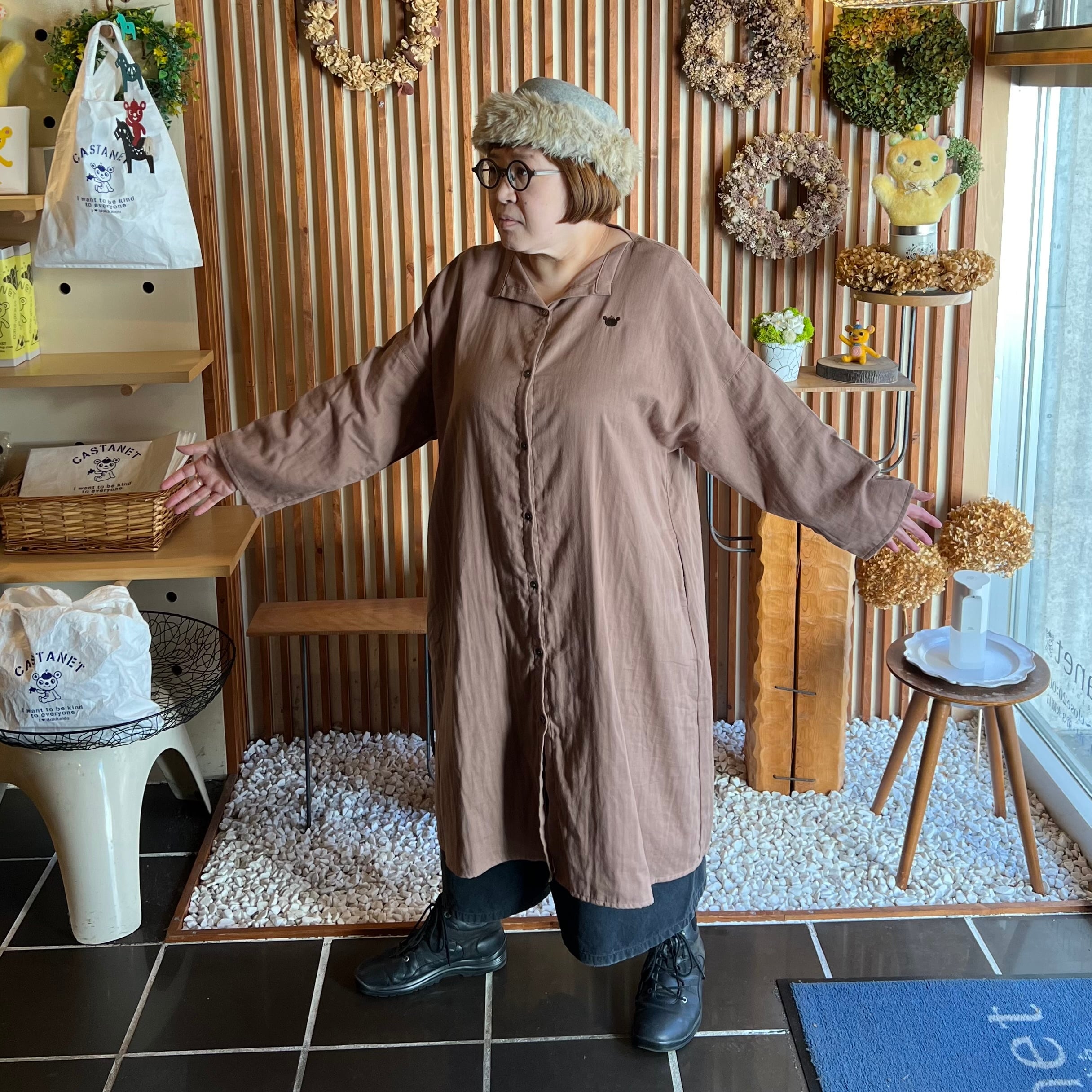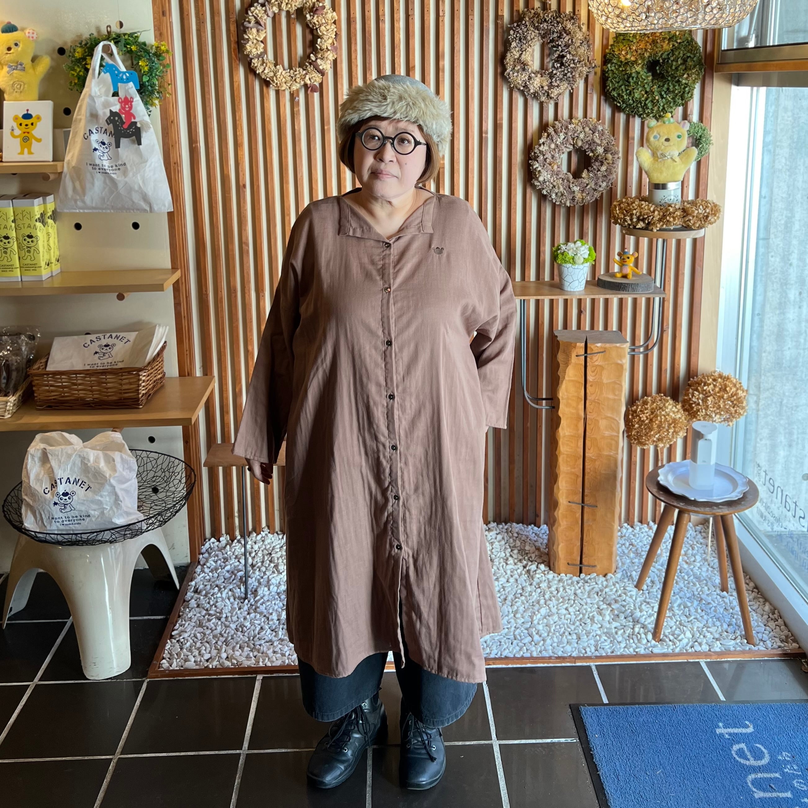 『ガーゼ』スキッパーシャツワンピース・ナッツブラウン